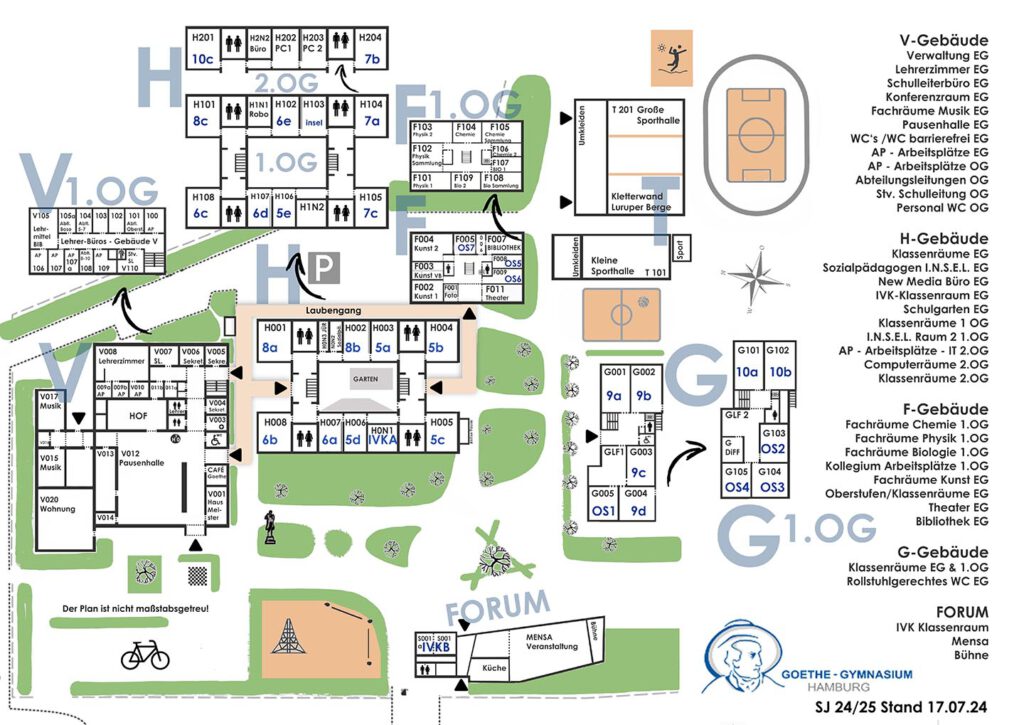 Am Goethe-Gymnasium und drumherum gibt es exzellente und moderne Sportanlagen, die ein sehr breites Sport- und Bewegungskulturangebot ermöglichen. Dies umfasst eine große Sportspielhalle mit Kletterwand, eine ‚Kleine Halle’ mit Spiegelwand und mit der ‚Goethe-Arena’ einen vielseitigen Sportplatz mit einem eigenen Seminarraum.