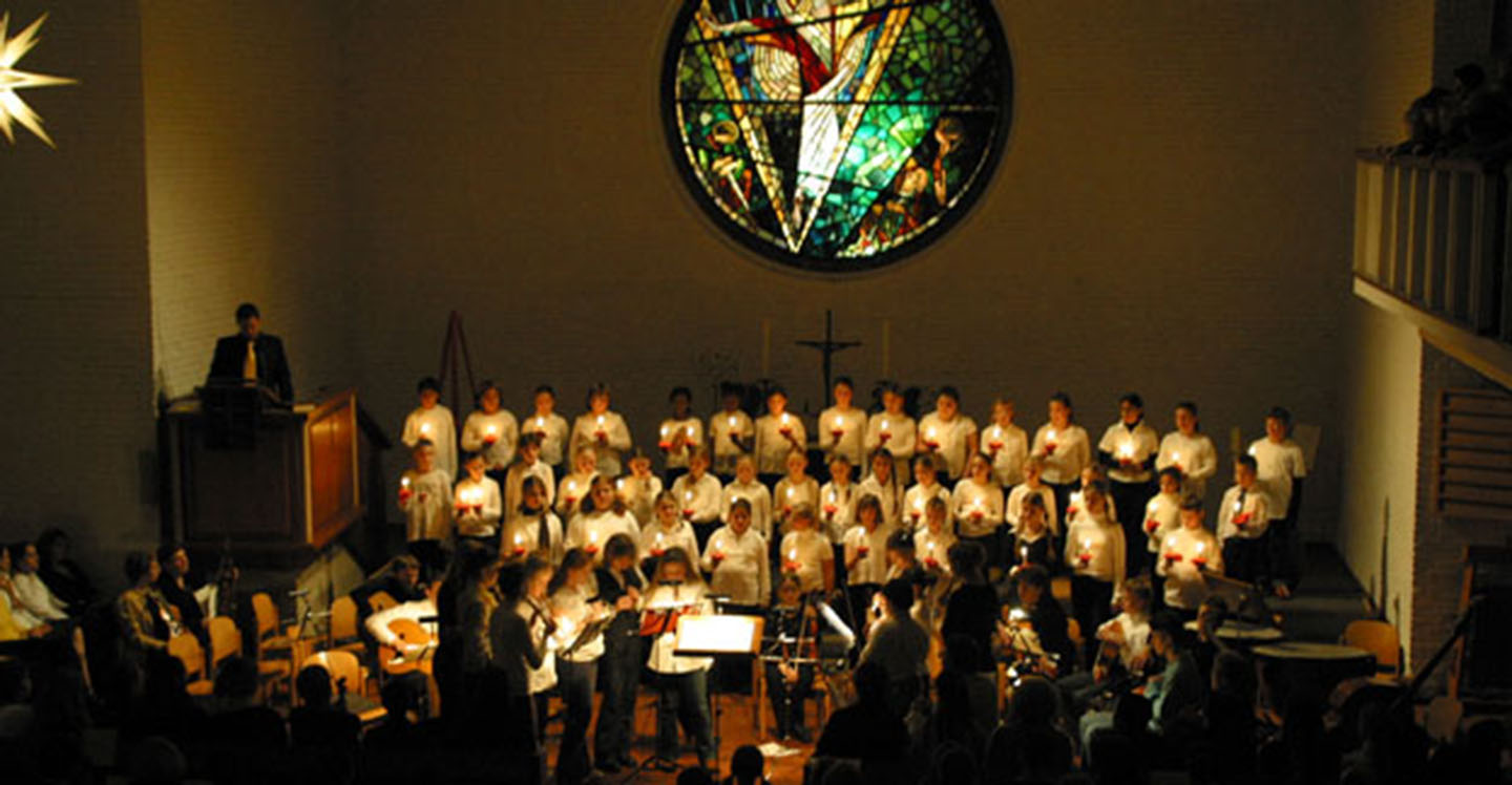 Die Musiker des Goethe-Gymnasiums, Sänger und Instrumentalisten, waren diesmal aus der Kirche „Zu den zwölf Aposteln“ in die etwas größere „Auferstehungskirche“ an der Flurstraße ausgewichen, weil es in den letzten Jahren an der Elbgaustraße für das traditionelle Weihnachts- konzert der Schule zu eng geworden war. Aber auch hier waren die Räumlichkeiten dem Ansturm der Schülerschaft, der Eltern und der Freunde des Goethe-Gymnasiums kaum gewachsen. Schulleiter Egon Tegge, der zur Begrüßung fast entschuldigend auf das Anwach-sen der Schule hinwies, deutete die Hoffnung der gesamten „Schulfamilie“ auf etwas mehr „Raum in der Herberge“ an. Eingeweihte wissen bereits, dass in allernächster Zeit auf dem Schulgelände mit dem Bau eines für den Stadtteil so notwendigen Kulturzentrums begonnen wird.Zum Auftakt gab es ein Konzert für Klavier und Orchester (Johann Samuel Schröter), in dem die 17jährige Veronika Horzela, die frisch gebackene Schulsprecherin, als Solistin herausragte.
