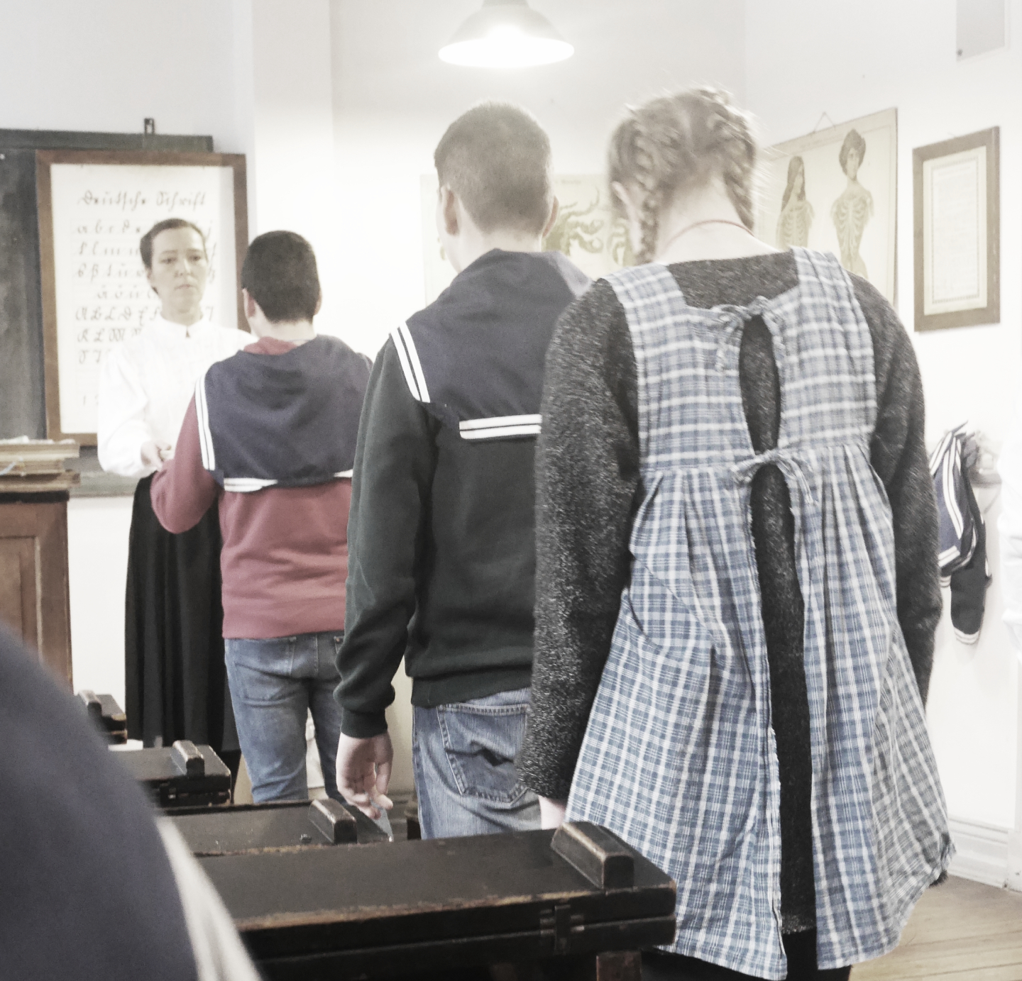 Die letzten Wochen und Monate beschäftigte sich der Kurs mit den Themen “Erziehung im Nationalsozialismus ” sowie “Kindheit und Jugend im Wandel der Zeit” . Um diese Einheit abzuschließen und zu vertiefen besuchte der Kurs am 26.1.16 das Hamburger Schulmuseum…”Jawohl , Herr Lehrer” schallte es dann in der “kaiserlichen Unterrichtsstunde” von den Knaben und Mädels des Goethe-Gymnasiums von den harten Bänken und in der Ausstellung zum Nationalsozialismus sollte jedem klar geworden sein: Nie wieder Faschismus und Rassismus! Dafür müssen wir täglich kämpfen.