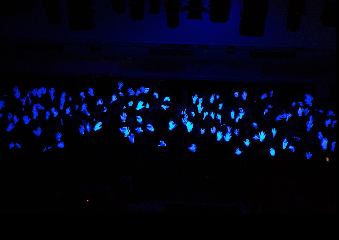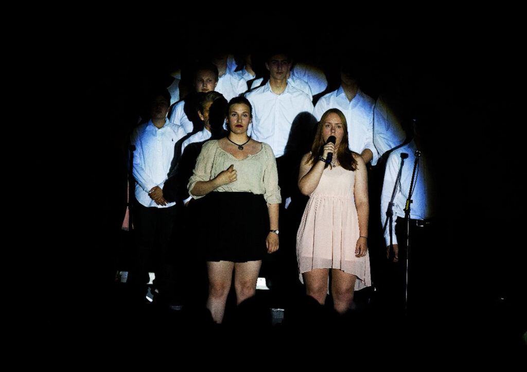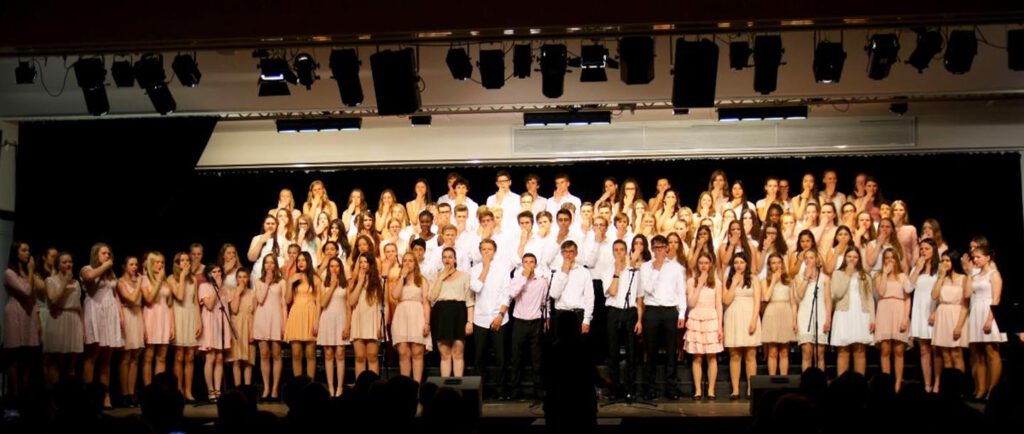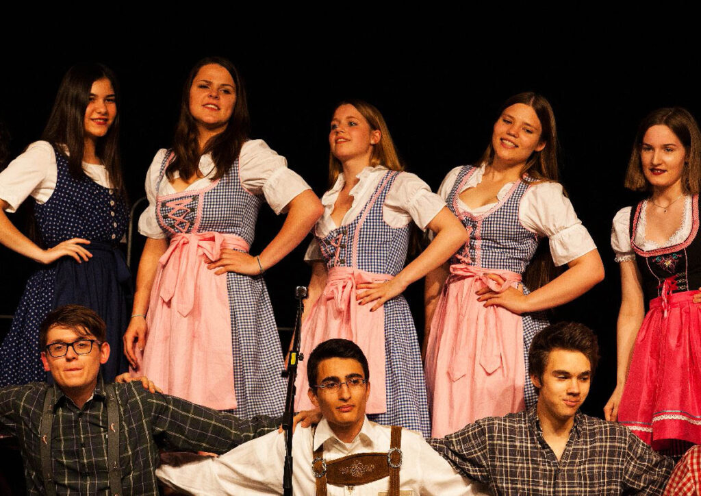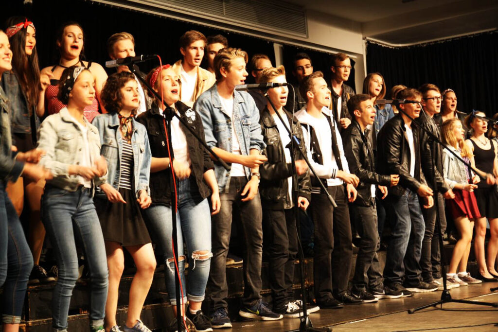 Struktur erhält die Revue auch durch die musikalischen Einlagen, wobei insbesondere der Song „Hanging Tree“ aus dem Kinofilm „Die Tribute von Panem“ eindrucksvoll vom Großen Chor des Goethe-Gymnasiums unter der Leitung von Astrid Demattia interpretiert wird. So bietet „Alle Jahre wieder“ alles, was eine Revue ausmacht: Imposante Bilder fürs Auge, Nachdenkliches, aber auch komische Momente.
