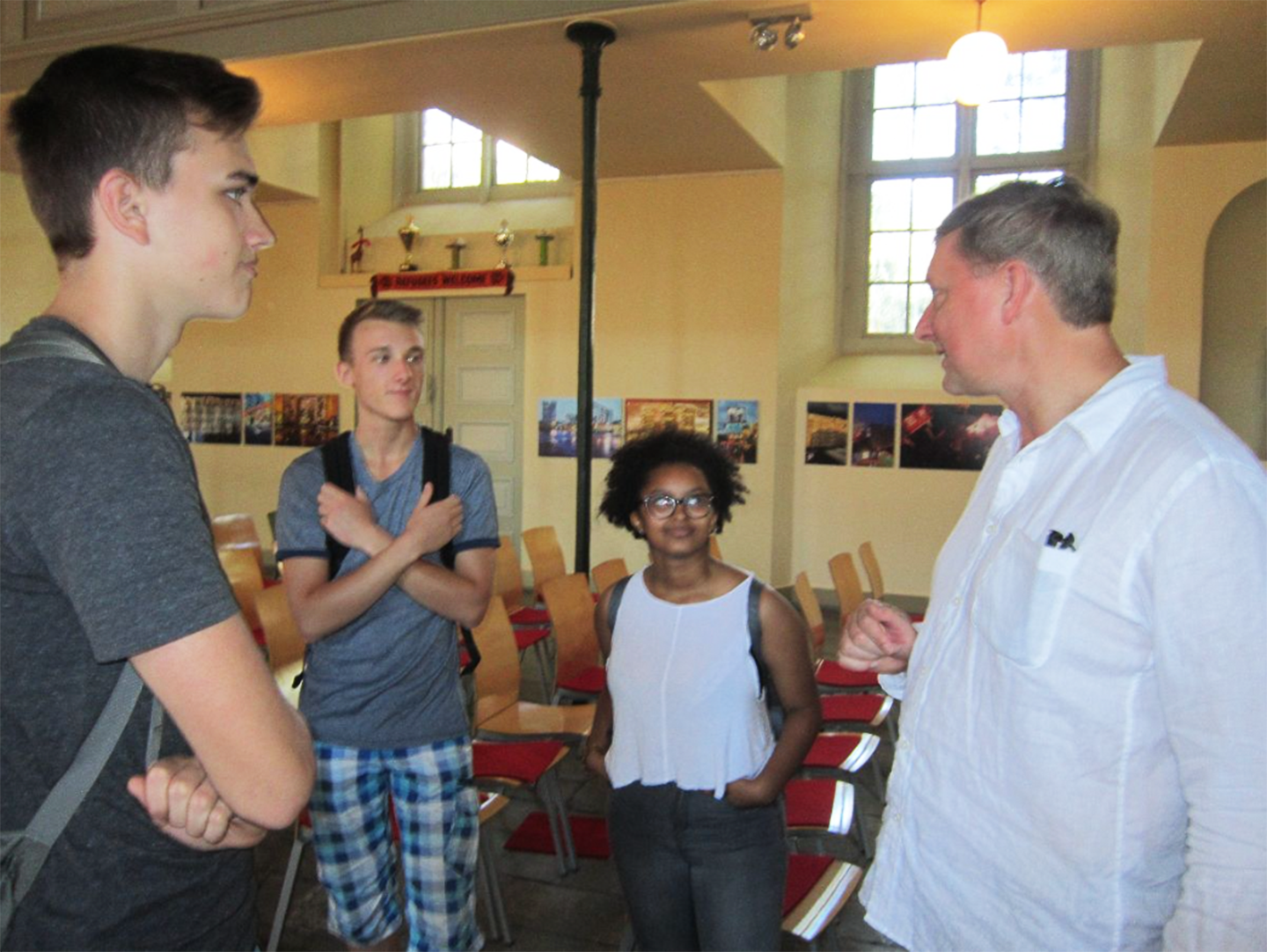 Donnerstag, 15.09.2016: Das Goethe-Gymnasium ist mal wieder am Puls der Zeit. Erst heute wurde der Gastkommentar von Pastor Wilm der St. Pauli Kirche in der druckfrischen ZEIT veröffentlicht und schon sind wir mit dem PGW-Kurs S1 von Herrn Kindler vor Ort und haben die einzigartige Gelegenheit, den Pastoren höchstpersönlich zur Flüchtlingsfrage zu interviewen. Lest hier bald mehr von unserer Projektwoche!