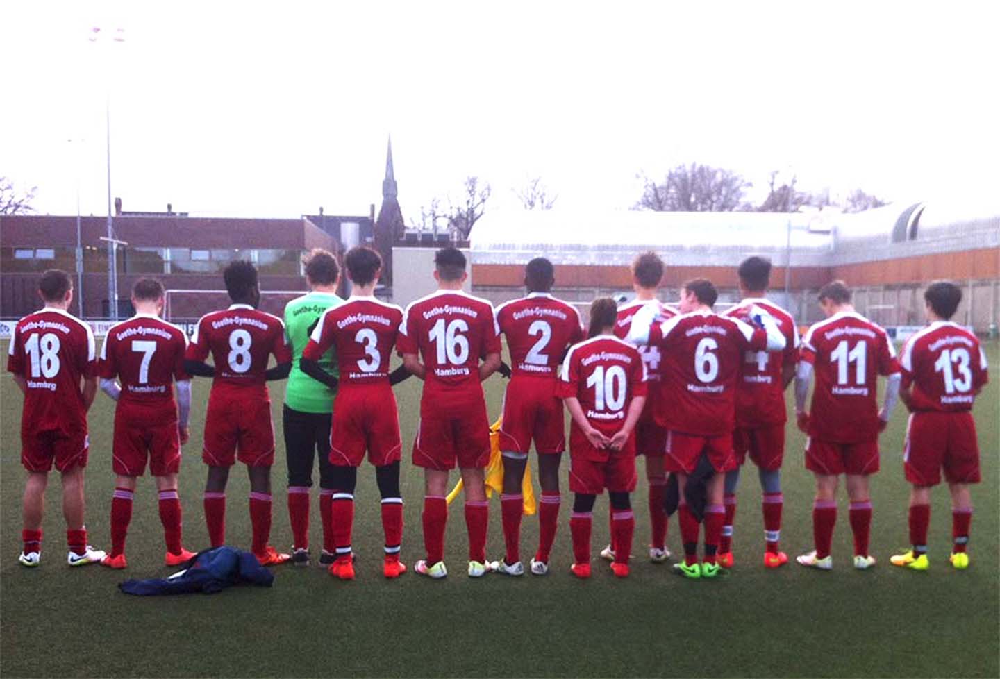 Am Donnerstag, den 01.12.2016 spielte unser Schulteam WK1, Jg. 2001 und älter in der 2. Runde gegen das Gymnasium Kaiser-Friedrich-Ufer. Gegen einen starken Gegner gingen wir schnell durch einen Handelfmeter durch Michel Amorin 1:0 in Führung . Kurz vor der Pause kassierten wir den Ausgleich. Nach dem Wechsel standen wir enorm unter Druck, verteidigten aber vielbeinig und mit Herz, alle warfen sich voll rein. In die Druckphase des Gegners erzielte Michel sein zweites Tor und es taten sich mehr Räume für uns auf.
