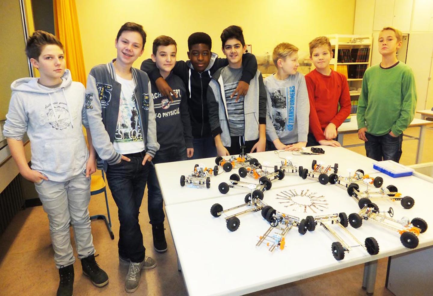 Letztes Mal waren im “Modellbaukurs: Auto” zur Hälfte Mädchen, dieses Mal ist die Lehrerin Frau Aßmann die einzige Frau. Hier seht ihr einige der stolzen Modellbauer, die es schaffen, nach einer Zeichnung ein Automodell zusammen zu schrauben, sodass es sich lenken lässt und mit dem Motor durch die Gegend flitzt. Jetzt stehen wichtige Entscheidungen an: soll mein Modell eine Gangschaltung mit drei Gängen bekommen, oder eine Fernsteuerung für Motor und Lenkung, oder soll es ein Unimog mit Kran werden? Im Januar wollen wir uns Anregungen im Miniaturwunderland holen. Danach wird im Sommer der ein oder andere noch eine Karosserie aus Sperrholz aussägen. Man darf gespannt sein.