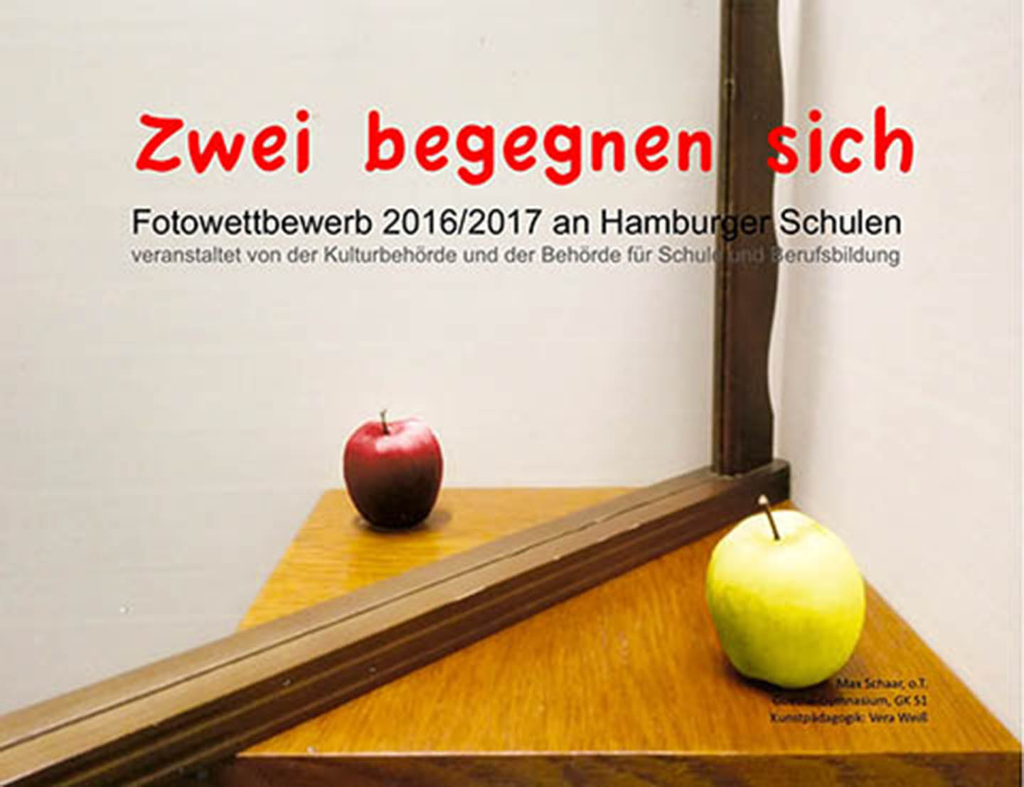 Gleich mehrere Gewinner kann das Goethe-Gymnasium bei dem Fotowettbewerb “Zwei begegnen sich” vorweisen, der für alle Hamburger Schulen ausgeschrieben war. Von Portraitfotografie bis Objektfotografie waren der Fantasie keine Grenzen gesetzt. Es konnten sich zwei Menschen, zwei Emotionen, zwei Objekte, hell und dunkel, laut und leise und vieles mehr auf vielfältige Weise treffen und einen Dialog miteinander eingehen. Für die Ausstellung ausgewählt wurden die Arbeiten der 7b von Frau Götz, die zusammen mit der IVK-Klasse ein fotografisches Memory-Spiel darstellen, das Gemeinsamkeiten von hier aufgewachsenen und geflüchteten Schülern zeigt. Als Einzelarbeiten wurden dazu Fotografien von Max Schaar, Jens Domstreich, Thomas Wotzka und Florian Quast aus dem Kunst-Grundkurs von Frau Weiß ausgewählt. Besondere Erwähnung findet dabei Max Schaar, der es mit seinem Foto der zwei Äpfel (oder einem?) auf die Titelseite des digitalen Katalogs geschafft hat! Herzlichen Glückwunsch den Gewinnern!