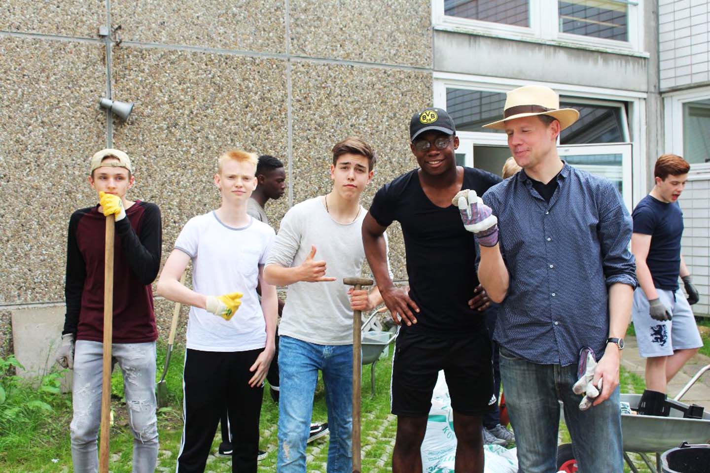 Durch den Aufruf der SV in Kooperation mit den Goethe-Gartenexperten (Herrn Junge und Herrn Carstens), packten die Klasse 10b und einige fleißige Helfer an. Das Ziel war, das ganze Unkraut zu jäten, welches sich über die letzten Wochen angehäuft hatte. Wie die letzten Tage in Hamburg, war auch dieser Nachmittag sehr warm und man konnte bei der Arbeit ein paar Schweißtropfen auf der Stirn von einigen Schülern sehen. Es wurde in Gruppen gearbeitet und jede Gruppe hatte eine andere Herangehensweise.