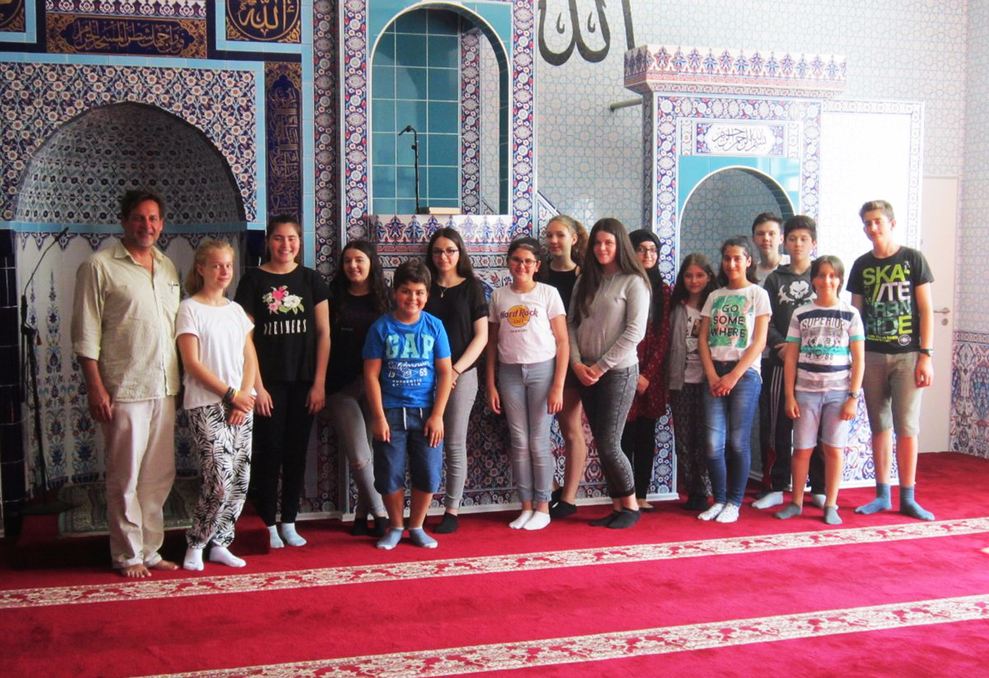 Montag, den 19. Juni 2017: Im Rahmen des Religionsunterrichts der Klasse 7 machten wir uns mit Herrn Petereit auf den Weg zur Moschee Camii Schnelsen, die seit zwei Jahren hier direkt in unserer Nachbarschaft in der Elbgaustraße ihre Räume gefunden hat. Mehmet, der die Führungen der Schulklassen betreut, begrüßt uns herzlich: “Hier ist jeder willkommen – die Tür ist immer offen.” Wir erfahren in der Stunde alles über die fünf Säulen des Islam, der Aufgabe des Muezzin und der Bedeutung der zahlreichen Verzierungen auf den Kacheln des Gebetsraums, in den sich zum Freitagsgebet bis zu 300 Gläubige einfinden.