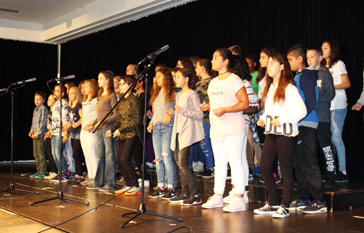 Dass Goethe fast auf den Tag genau vor 268 Jahren geboren wurde, kann für die neuen Fünftklässler nur ein gutes Omen sein. So sah es auch der Koordinator der Unterstufe Klaus Tepp, der ebenfalls warme und motivierende Worte an Schüler, Schülerinnen und Eltern richtete. Wie immer ging es am Goethe natürlich auch in diesem Jahr musikalisch bei der Einschulung der neuen Fünftklässler zu: Cornelia Barnick hatte zusammen mit ihrem Unterstufenchor das Stück „Happy“ von Pharell Williams einstudiert. Ein Gefühl, mit dem sicherlich die meisten Anwesenden so kurz nach den Sommerferien ins neue Schuljahr gestartet sind.