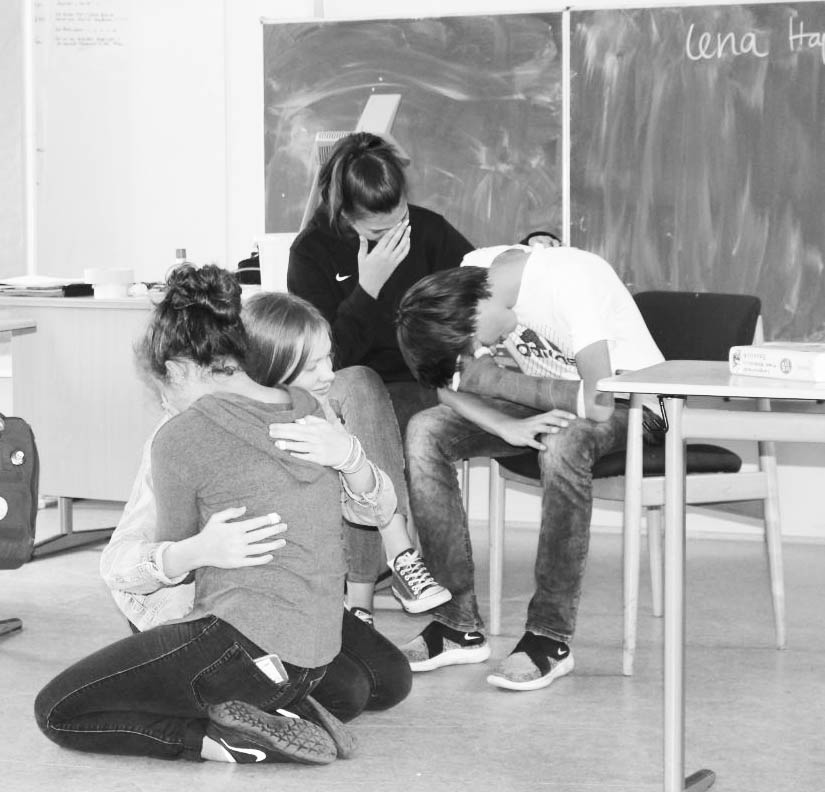 Montag, den 11. September 2017: Es wird eine spannende Woche am Goethe-Gymnasium mit vielfältigen Projekten! Unser Direktor Herr Scherler begrüßte mit den Kolleginnen vom IKM (Institut für konstruktive Konfliktaustragung und Mediation) die neunten Klassen, die sich in dieser Woche mit dem Thema Gewaltpräventation und Zivilcourage auseinandersetzen. Im Theaterstudio wurde zur Annäherung an die Thematik der Film “Homevideo” gezeigt, der alle sichtlich berührte. Im Anschluss bat uns Frau Hapke vom Insitut, unsere Gefühle in einem Standbild zu zeigen.