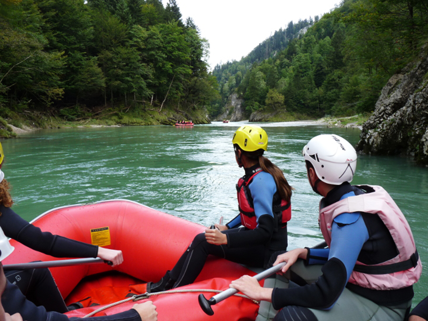 Am ersten Tag stand eine Rafting-Tour auf der Tiroler Arche auf dem Programm. Die Tour führte durch eine malerische Berglandschaft, die alle Schüler schwer beeindruckte. Nach der 2-stündigen Rafting-Tour stand uns der beschwerliche Rückweg über den Schmugglerpfad bevor. Bei schönstem Wetter wurde dann gemütlich von Deutschland nach Österreich zurückgewandert.