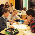 Unsere Schule nahm in diesem Jahr zum sechsten Mal in Folge an dem bundesweiten Mathematikwettbewerb teil, bei dem von Jahrgang 5 bis hin zur Oberstufe teilweise sehr komplexe Aufgaben bearbeitet und die Lösungen im Internet eingegeben werden müssen, um in die nächste Runde zu gelangen. Dabei rauchte nicht nur vielen Schülern das Gehirn; auch die Lehrer hatten teilweise lange zu knobeln an Aufgaben, bei denen man zum Beispiel sehr umfassende (und teilweise sogar dreidimensionale) Sudokus lösen musste. So dachten Fünft- und Sechstklässler darüber nach, um wie viele Meter sich in Ägypten ein Pyramidenstein bewegt, der auf Baumstämmen mit dem Umfang 1,5 m gerollt wird, die sich je zweimal um sich selbst drehen. Siebt- und Achtklässler dagegen brüteten über der Frage, wie viele Drei- und Vierecke sich in einem Dreieck befinden, bei dem zwei Seiten geviertelt und alle Zwischenpunkte mit den gegenüberliegenden Dreiecksseiten verbunden werden.1