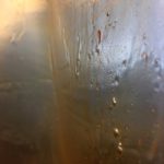 Renee Menken, Latex – Eine nahezu rechteckige Fläche, so dünn wie eine dicke Folie, hängt auf Blickhöhe frei im Raum und teilt ihn in ein Davor und ein Dahinter.