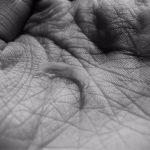 Michel Schenk, hautnah – Auf der Kamerafahrt über eine Oberfläche folgt man feinen linearen Strukturen, als flöge man in geringem Abstand über eine fremde Landschaft.