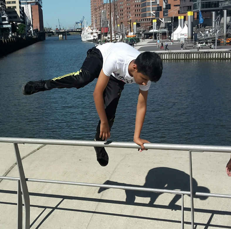 Dabei wurde den Schülern einiges abverlangt. Sie meisterten die an sie gestellten Aufgaben bravourös. Zusammen mit den beiden Übungsleitern Aljoscha und Tobi suchten sie sich herausfordernde Hindernisse. Es galt Geländer frontal und en passant zu überwinden und dabei bestimmte Techniken anzuwenden, senkrecht Mauern zu überqueren, zu balancieren und an einer Wand (mit vorstehenden Steinen) zu klettern. Einige trauten sich hier hoch hinaus und überwanden diese auch. Den Schülern haben die Aufgaben viel Spaß gemacht. Nebenbei haben sie erfahren, wieviel Selbstvertrauen sie hinzugewinnen, wenn sie ihre Ängste überwinden. Die Schüler resümierten am Ende, dass der Parkoursport zur Suchtprävention beiträgt, da er ihnen viele Erfolgserlebnisse bereitet, die die eigene Persönlichkeit stärken. Ganz nebenbei haben sie auch etwas für ihre körperliche Fitness getan.