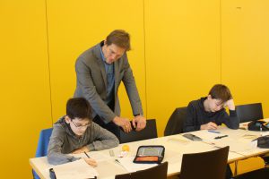 Ziemlich viel, wie am heutigen Freitag 32 Schülerinnen und Schüler unserer Schule bei der zweiten Runde der Matheolympiade erfahren haben. Über vier Zeitstunden lösten sie teilweise sehr komplexe und anspruchsvolle Aufgaben, bei denen es nicht nur um die Länge von Zuckerschnüren und die PIN von SIM-Karten ging. Die Teilnehmer aus den Jahrgängen 5 bis 8 und der Oberstufe hatten sich bereits vor den Herbstferien für die zweite Runde qualifiziert und mussten jetzt erneut ihre mathematischen Fähigkeiten unter Beweis stellen. Für Stärkung in Form von Mandarinen, Schokolade und Gummibärchen hatte die Mathefachschaft gesorgt. Die Mathelehrer des Goethe-Gymnasiums werden in diesem Jahr die Korrektur selbst durchführen und sind schon jetzt gespannt, wer für die Landesrunde im Januar zugelassen wird. Stolz auf ihre Teilnahme in Runde 2 dürfen aber alle Teilnehmer sein. Das brachte auch Schulleiter Frank Scherler zum Ausdruck, der den Schülern in der Aula einen Besuch abstattete, ihnen viel Erfolg wünschte und sich vom Anspruch der Aufgaben überzeugte. Nicht nur die Aufgaben der Studienstufe hatten es in sich, auch wenn es auf den ersten Blick nicht schwierig scheint, die Länge einer Zuckerschnur auszurechnen. Aber dieser Eindruck täuscht!