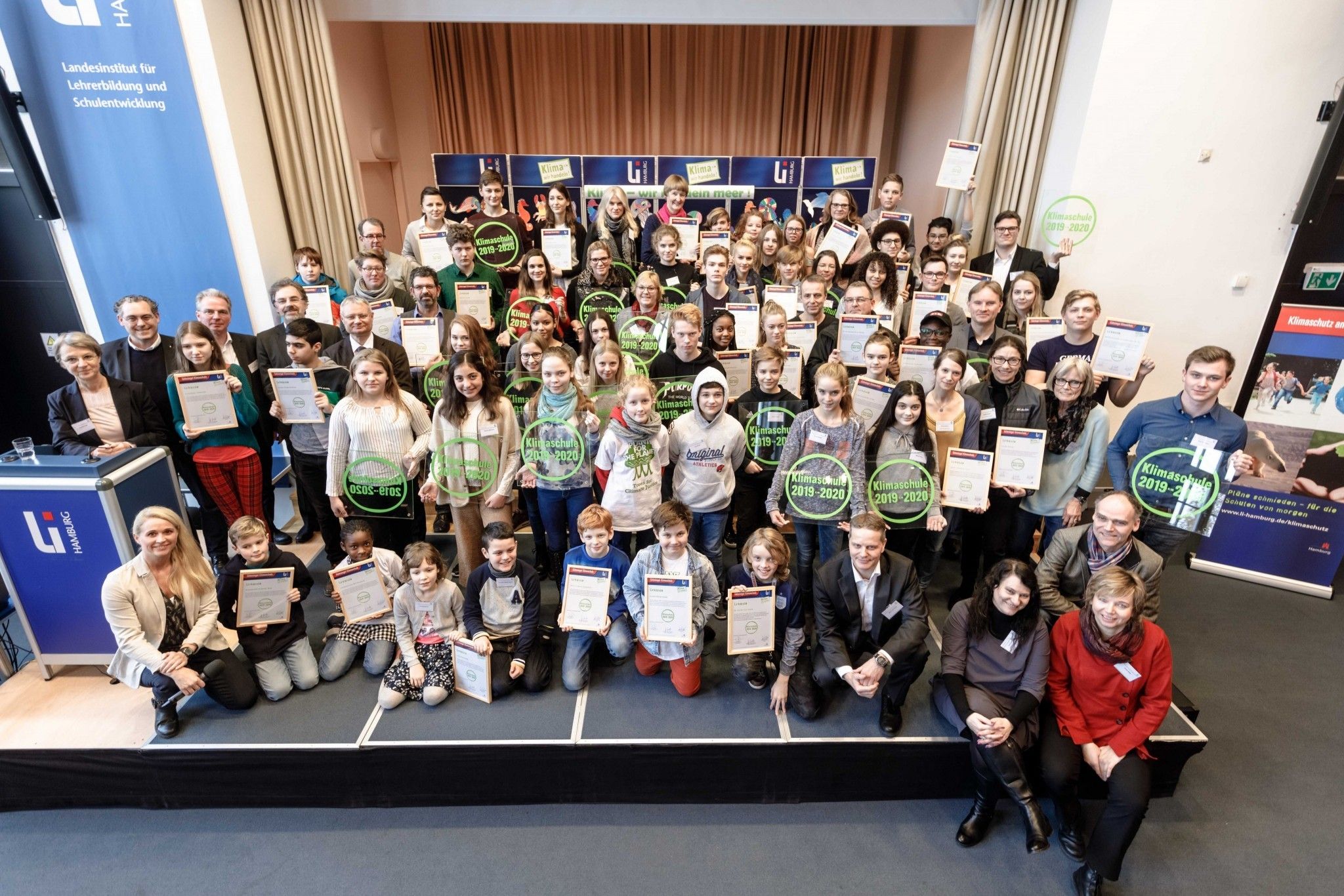 Freitag, den 30. November 2018: Auch in diesem Jahr haben sich zahlreiche Hamburger Schulen entschieden, „Klimaschule“ zu werden. Auch das Goethe-Gymnasium ist wieder dabei und wurde im Rahmen einer feierlichen Auszeichnungsveranstaltung im Landesinstitut für Lehrerbildung und Schulentwicklung (LI) für seine vorbildliche Arbeit im Klimaschutz mit dem Gütesiegel „Klimaschule 2019-2020“ ausgezeichnet. Um diese Auszeichnung erneut zu erhalten, musste der alte Klimaschutzplan des Goethe-Gymnasiums überarbeitet und eingereicht werden. Dabei stellte sich heraus, dass viele Ziele erreicht wurden und darüber hinaus einige neue Klimaschutzmaßnahmen hinzugekommen sind. Eine davon ist das Aufstellen eines Pfandsammelbehälters in der Pausenhalle. Die erzielten Einnahmen sollen dann Klimaschutzorganisationen gespendet werden. Der neue Klimaschutzplan ist sowohl in der Pausenhalle, als auch auf der Homepage des Goethe- Gymnasiums veröffentlicht.