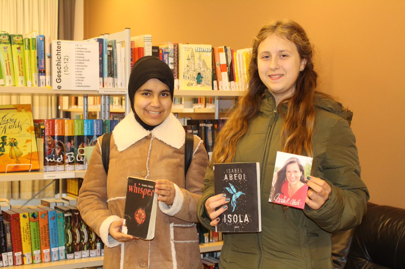 Freitag, den 7. Dezember 2018: Die sympathische Autorin Isabel Abedi war zu Gast in der Bibliothek, um der 7b ihr Buch „Whisper“ vorzustellen. Zu Beginn hat ein kleiner Austausch darüber statt gefunden, was die Schüler denn gerne lesen aber auch was für Filme sie schauen. Sie selbst ist auch ein großer Fan vom Lesen und von Filmen. Von „Marvel“ Filmen bis über die Buchreihe „Woodwalkers“ war vieles dabei. Danach hat sie uns einiges von sich erzählt, zum Beispiel, dass sie in der Werbung gearbeitet hat, bevor sie Autorin wurde. Auch spannende Fragen hat sie beantwortet, beispielsweise wieviel Prozent sie pro Buch verdient. Anschließend hat sie uns dann einige Kapitel aus ihrem spannenden Jugendbuch vorgelesen, und ergänzend erklärt, um was für Charaktere es sich an den jeweiligen Stellen gehandelt hat. Gegen Ende der Lesung, hat sie uns dann noch von der interessanten Geschichte hinter dem Buch berichtet, nämlich wie es entstanden ist. Vorher war die 8c in den Genuss gekommen, mit Isabel Abedi den Roman „Isola“ zu erleben.