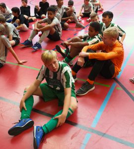 Volle Konzentration also und die richtige Mischung aus kräftesparendem und torgefährlichem Spiel finden. Das Team mit David im Tor, Rufus als zentralen Abwehrstrategen, Aaron und Maxi als variablen Mittelfeldakteuren und Ege als Stürmer tat dies in imposanter Weise und kam ohne ein Gegentor verdient eine Runde weiter. Herzlichen Glückwunsch, Jungs!