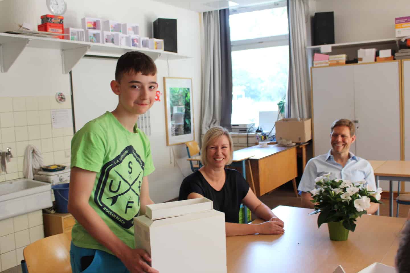 Am letzten Schultag haben die 6. bis 8. Klassen noch einmal ihren Projektkurs besucht. Während der Kurs mit dem Englischen Theater von Herrn Dührkop wieder einmal sein Publikum in den Bann schlug mit der hohen Qualität der englischen Aussprache der jungen Schauspieler, hatte der 4. Architekturkurs „Baue dein Traumhaus“ das Glück, seine Hausmodelle und Traumvorstellungen mit der Architektin Frau Heinze zu diskutieren. Dieser Kurs wurde sehr zur Begeisterung der Schüler vier Wochen von unserem Schulleiter Herrn Scherler übernommen, da ich eine OP hatte. Dabei habe ich Herrn Stuhlmacher bewundert, dass er es vorher geschafft hat, für all meinen Fachunterricht eine qualifizierte Vertretung zu finden. Danke! Die anderen 21 Projektkurse haben sich den Schülern Anfang Juni vorgestellt und ihre Arbeit gezeigt.