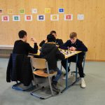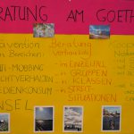 Antons Vater nutzte die Zeit, um sich in der Pausenhalle über das Goethe-Gymnasium zu informieren. Die Schulleitung, Eltern und der Schülerrat hatten hier verschiedene Infostände aufgebaut.