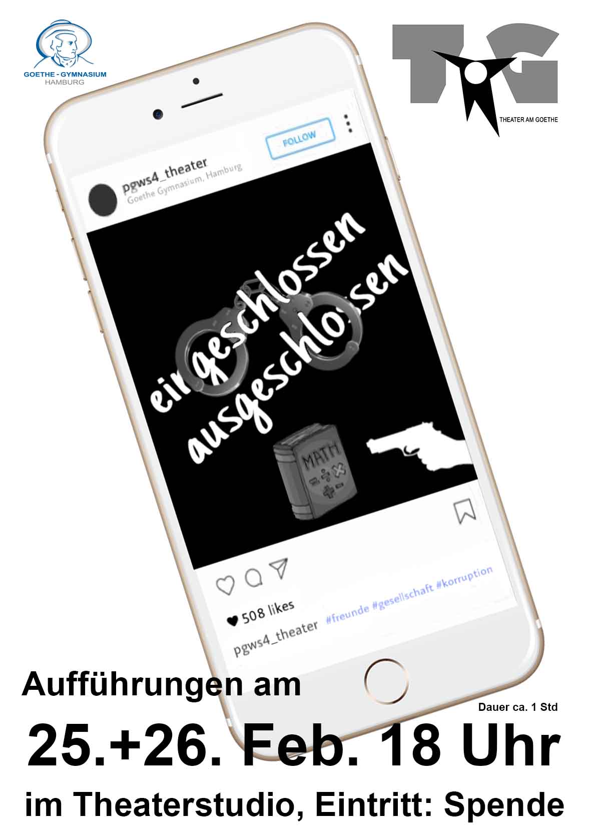 Am Dienstag und Mittwoch (25. und 26.02.) präsentiert das PGW-Profil S4 um 18 Uhr eine episodenhafte Eigenproduktion unter dem Titel “eingeschlossen|ausgeschlossen”. Das Stück dauert etwa eine knappe Stunde, der Eintritt ist eine kleine Spende für die Profilkasse.