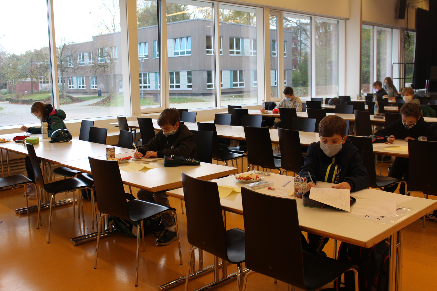 Wenn Mandarinenduft durch das Forum zieht und 20 Schüler:innen der Kopf raucht, dann ist es die Zeit der Matheolympiade am Goethe-Gymnasium. Vor allem die fitten Rechner aus den 5. und 6. Klassen hatten in großer Zahl erfolgreich die erste Runde absolviert und saßen am Freitag, dem 13. fast fünf Stunden über den neuen Aufgaben. Aber Aberglaube ist ja bekanntlich nichts für Mathematiker. Und so saßen sie mit Abstand und unter ständigem Lüften und tüftelten. Bereits am Mittwoch hatten die 5. und 6. Klassen mit Herrn Sawatzki und Frau Eckert in einem Mathecamp trainiert, denn bei der Matheolympiade geht es nicht allein um die richtige Lösung, sondern vordergründig ist eine gut nachvollziehbare Herleitung des Lösungsweges.