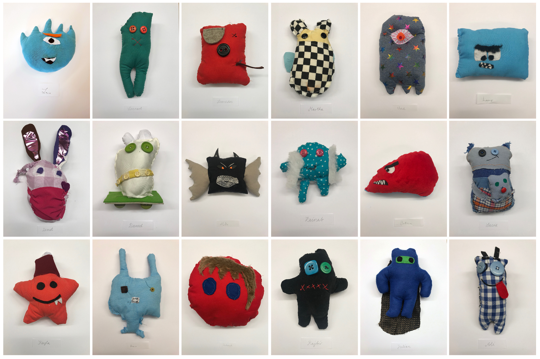 In dem über mehrere Wochen andauernden Nähprojekt ging es zuerst um den Entwurf eines Kuschelmonsters. Techniken wie: einen Faden einfädeln, den Rückstich üben, einen Knopf annähen oder die Nahtzugabe beim Zuschneiden des Stoffes beachten – das alles wurde geübt und dann mit viel Können und Geduld angewendet.