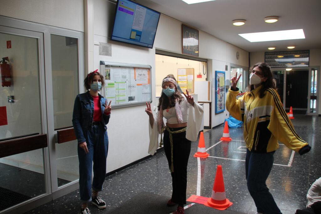 Von all diesen der Pandemie geschuldeten Maßnahmen ließ sich der Abiturjahrgang nicht in seiner Aufbruchsstimmung beeinträchtigen und begann diese Woche die Mottowoche mit Kostümen aus den verschiedensten Jahrzehnten. Dazu findet ihr hier bald eine swingende Flower-Power-Galerie mit allen Finessen. Seid gespannt!