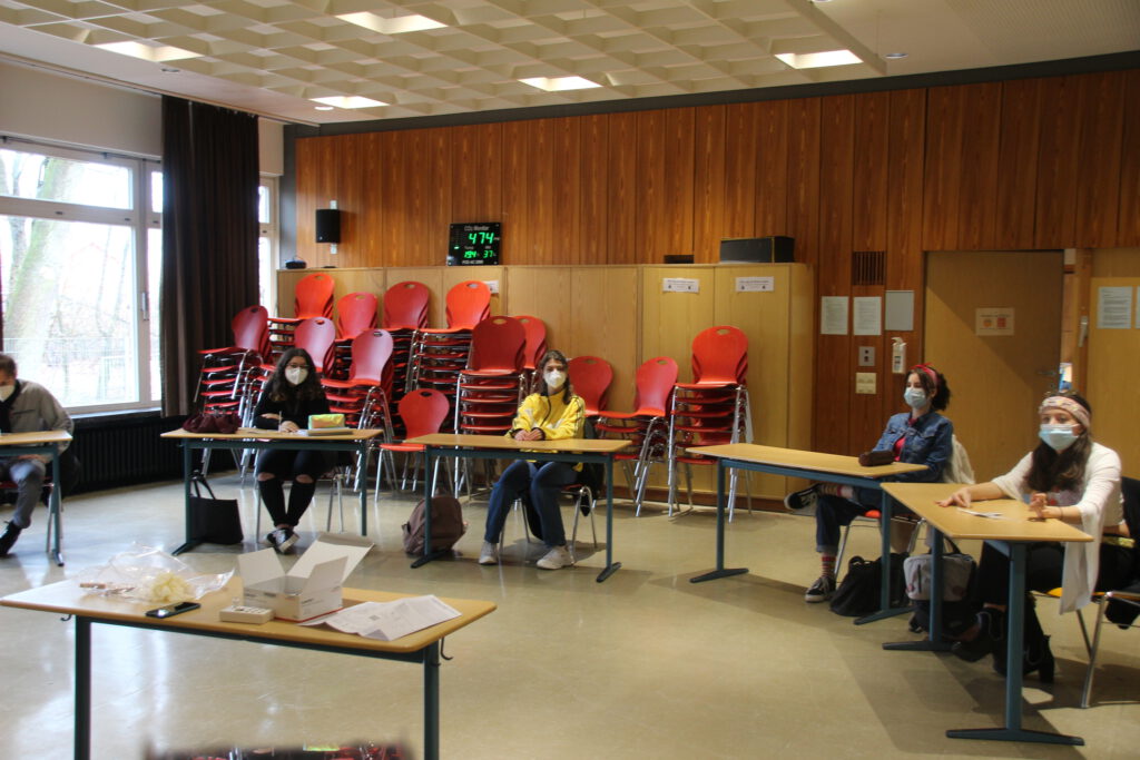 Die Schulleitung hatte sich zuvor entschlossen, die übrigen bereits gelieferten Tests für die höheren Jahrgangsstufen einzusetzen, so dass ebenfalls Schüler*innen getestet werden konnten, obwohl der offizielle Start für die Schülerschaft erst nächste Woche stattfinden soll.