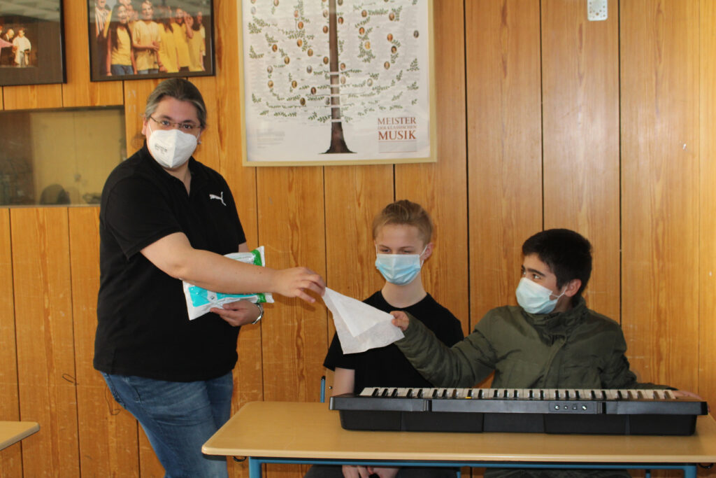 Dienstag, den 30. März 2021: Taste für Taste tasten wir uns an die chromatische Tonleiter heran. Mal klingt das entstandene Stück wie perfekt geeignet als Hintergrundmusik eines spannenden Thrillers, während man bei der Komposition der nächsten Gruppe den Frühling und die Vorfreude auf die freien Ostertage förmlichst heraushören kann. Und ganz zum Schluss kommt eine ganz spezielle Variante: Wie klingt es, wenn wir die Klaviere und Keyborde mit dem Desinfektionstuch reinigen? Auch das hat etwas bei einem solch musikalischen Trupp!