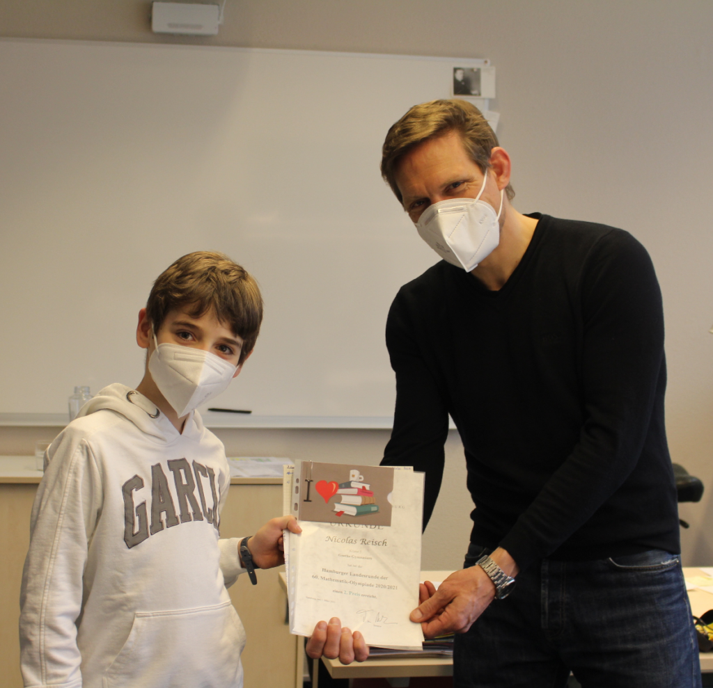 Alle drei hatten sich für diese qualifiziert und damit bereits als besonders begabte MathematikerInnen ausgezeichnet. Wie groß war jedoch ihre Freude, als sie erfuhren, dass Lisa sogar mit einer Urkunde für einen dritten Platz und Nicolas mit einem zweiten Platz geehrt wurde. Zusätzlich erhielten beide einen Büchergutschein.