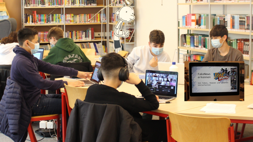 Dienstag, den 25. Mai 2021: Tatort ist die Schulbibliothek. Mit Laptops ausgerüstet schließen wir uns mit Frau Schlößer, der Leiterin der Bücherhalle in…