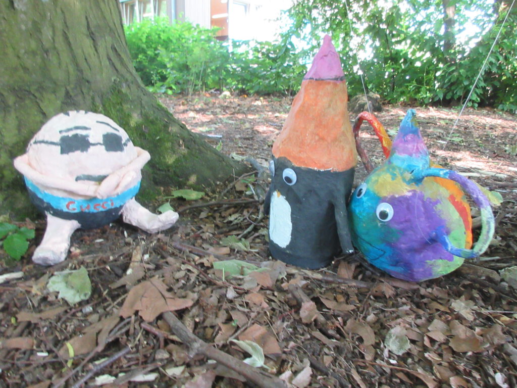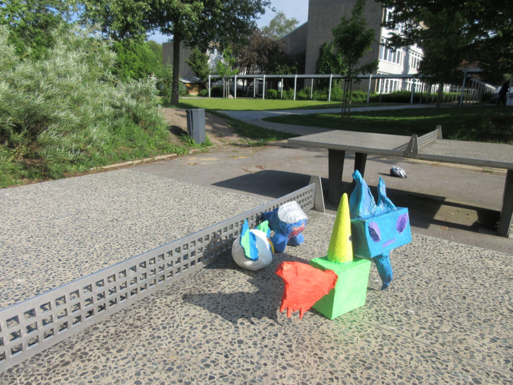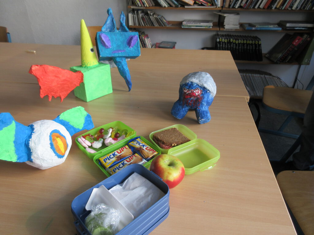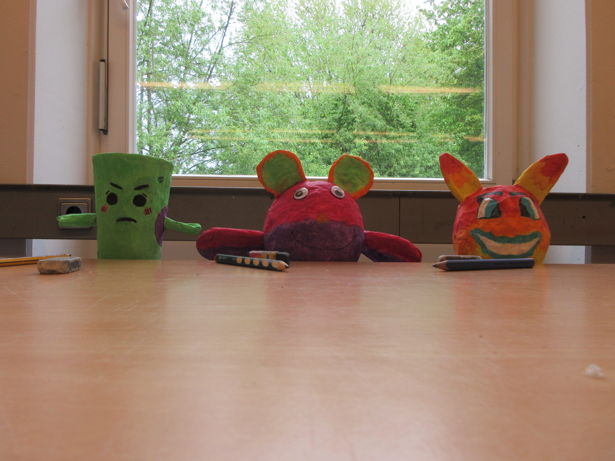 Montag, den 07. Juni 2021: Fünf lange Monate saßen wir auf dem Regal im Kunstraum und haben gewartet! Still war es imKunstraum, aber geduldig waren wir. Denn wir wollten ja fertig werden, und wir haben unsrichtig gefreut auf unsere Menschen: die Schülerinnen und Schüler aus den Klassen 6a und 6c von Frau Weiß- jetzt sind sie alle wieder da! Und wir, wir können jetzt die Schule unsicher machen! Runter vom Regal, ab geht die Post! Schaut mal, was wir hier in der Schule alles so erleben!