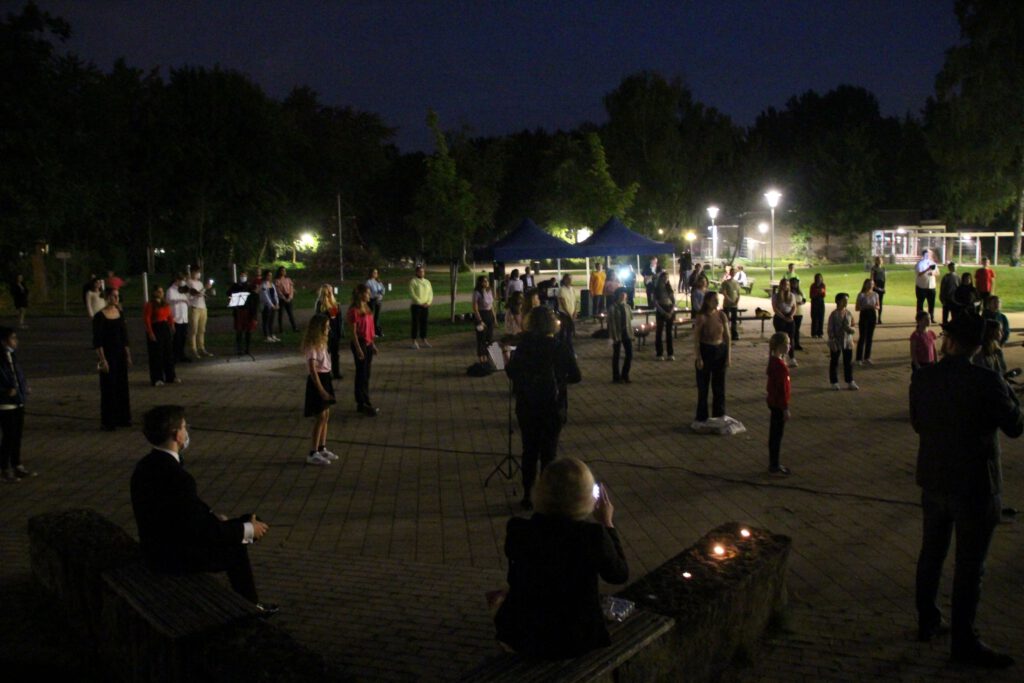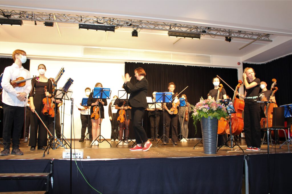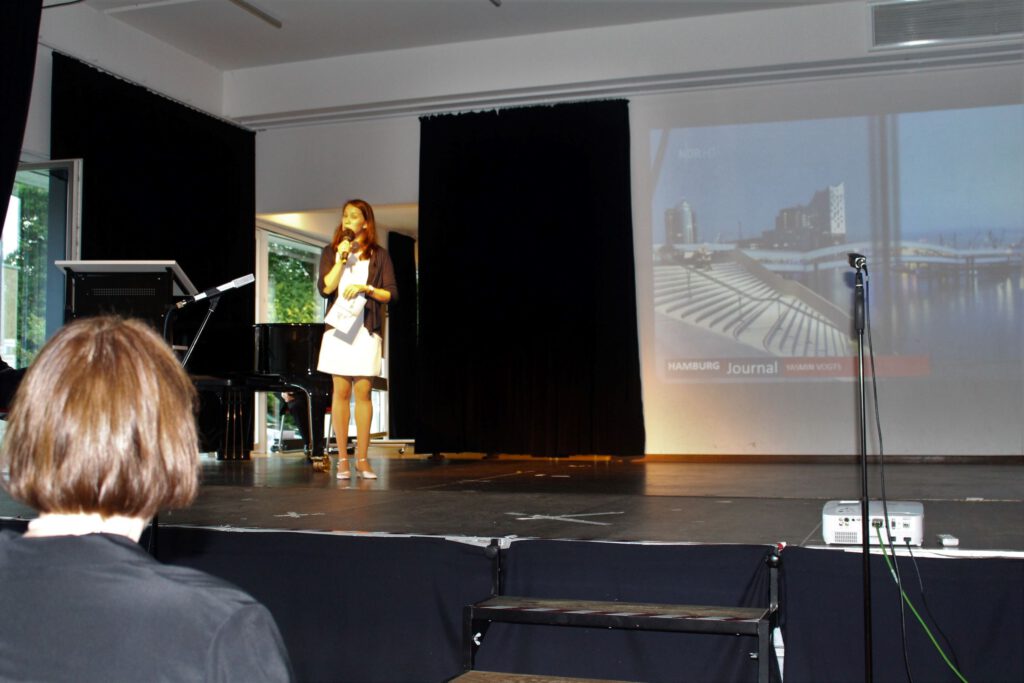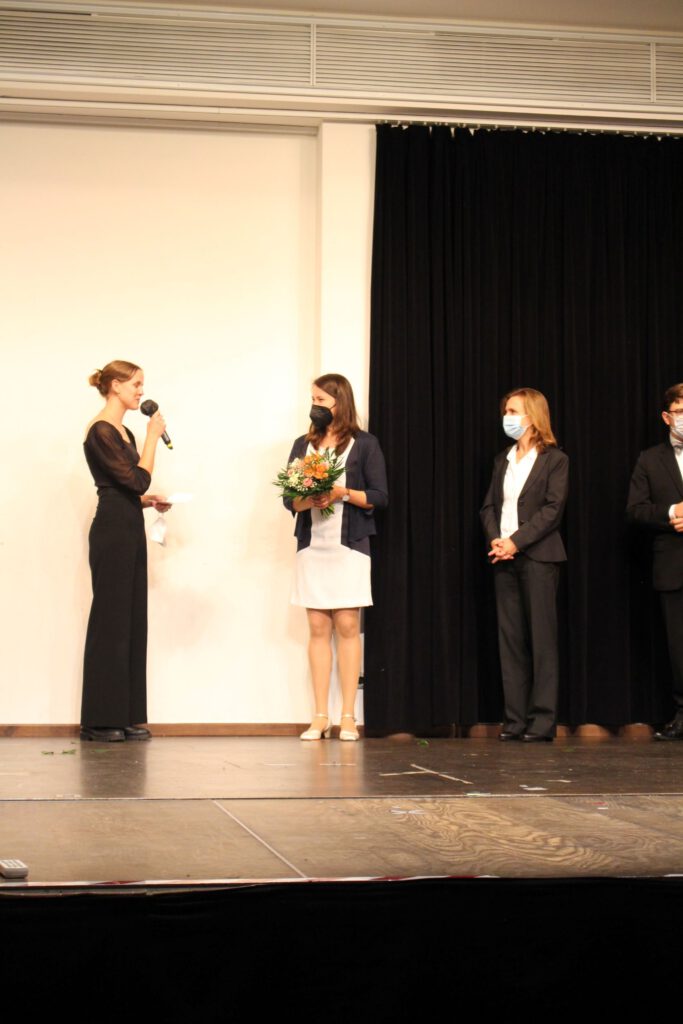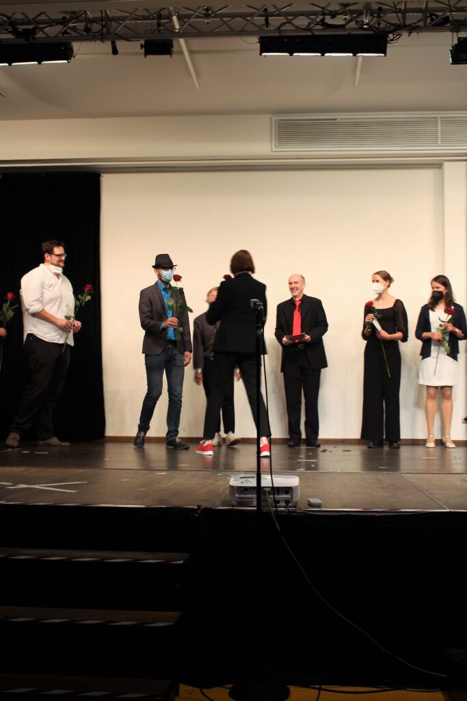 Wie Bonny & Clyde, Tom & Jerry, Bud Spencer & Terrance Hill, die Elbphilharmonie und Hamburg gehören auch Frau Astrid Demattia und das Goethe-Gymnasium zusammen. Daher vermochte am Abend des 10. Septembers 2021 niemand das Wort „Abschied“ in den Mund nehmen, obwohl der Anlass der Zusammenkunft die Verabschiedung der Musiklehrerin Astrid Demattia war. Über ein halbes Jahr lang plante die Astrid-AG, eine Delegation bestehend aus ehemaligen Schüler:innen und aktuellen Lehrer:innen, das Programm für den Abend: Eröffnet wurde dieser vom Schulorchester unter der Leitung der zu verabschiedenden Person selbst. Im Stil des Hamburg Journals moderierte im Anschluss daran Frau Yasmin Vogts als ehemalige Schülerin und aktuelle Kollegin von Frau Demattia den ersten Teil des Abends, welcher aus einer Rede des Schulleiters Frank Scherler und der Hamburgerin des Tages selbst bestand. Ein Rückblick mit allen Highlights der Demattia-Ära durfte an diesem Abend natürlich nicht fehlen. Für den krönenden Abschluss hatte der von Frau Demattia gegründete Große Chor ein musikalisches Dankeschön vorbereitet. Aufgrund der Unwetterwarnung wurde dieser Programmpunkt schließlich vorgezogen, sodass der Auftritt des beliebten Chorstückes „Thank you for the music“ von ABBA vor dem Forum mit natürlichen Show-Effekts in Form von Wetterleuchten ein regelrechtes Feuerwerk wurde. Von Videoeinspielern großer Chor- und Orchestermomente bis hin zu anlässlich des Festaktes einstudierten Sketches und Live-Auftritten – ein vielfältiger Abend erwartete das durch Corona-bedingte stark limitierte Publikum. Für das leibliche Wohl sorgten die Schulfotografin Frau Feya mit ihrem Cateringunternehmen und das Kunst-/Musik-Profil (S3).