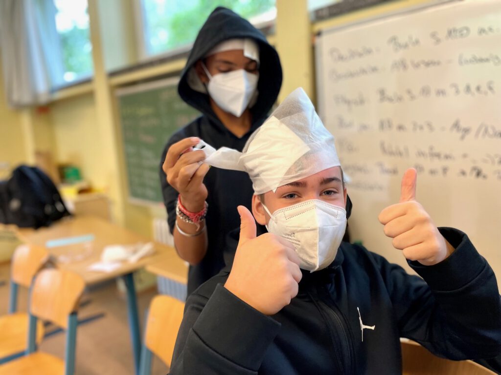 Die Klasse 9b fand vor allem prima, dass der Anteil von Theorie und Praxis ausgewogen war und dass die Kursleiterin von ihrem Medizinstudium und ihrer Ausbildung zur Rettungssanitäterin berichtet hat – ganz im Sinne der Berufsorientierung.