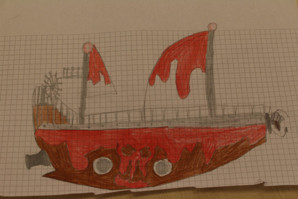 Mustafa illustrierte spontan das Piratenschiff von Capitano