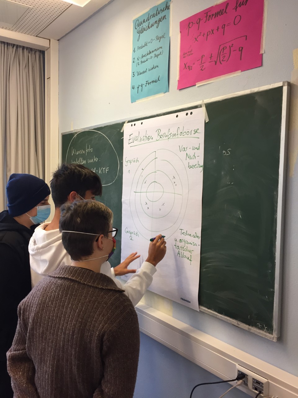 Durch dieses Format kam es zu einem sehr intensiven Austausch, einige Gruppen wünschten sich noch mehr Zeit, so angeregt verlief manch eine Unterhaltung über einen klassischen Arbeitstag, Fähigkeiten, die man mitbringen sollte oder bestmögliche Ausbildungswege. Positiv wahrgenommen wurde insbesondere die Interaktion: Die Jugendlichen hatten sich im Unterricht umfangreich vorbereitet und konnten viele Fragen stellen. Aber auch die Beratenden gingen sehr auf die jungen Menschen ein, stellten Rückfragen und versuchten individuelle Ratschläge zu geben. Dies sei in der Form sehr besonders gewesen und ein Unterschied zu den üblichen Ausbildungsmessen, so das Feedback einiger erfahrener Beraterinnen und Berater. Und die Schüler schienen dies ähnlich wahrgenommen zu haben. So schrieb ein 10.-Klässler auf seine Feedbackkarte „Man konnte einfach ALLES fragen.“