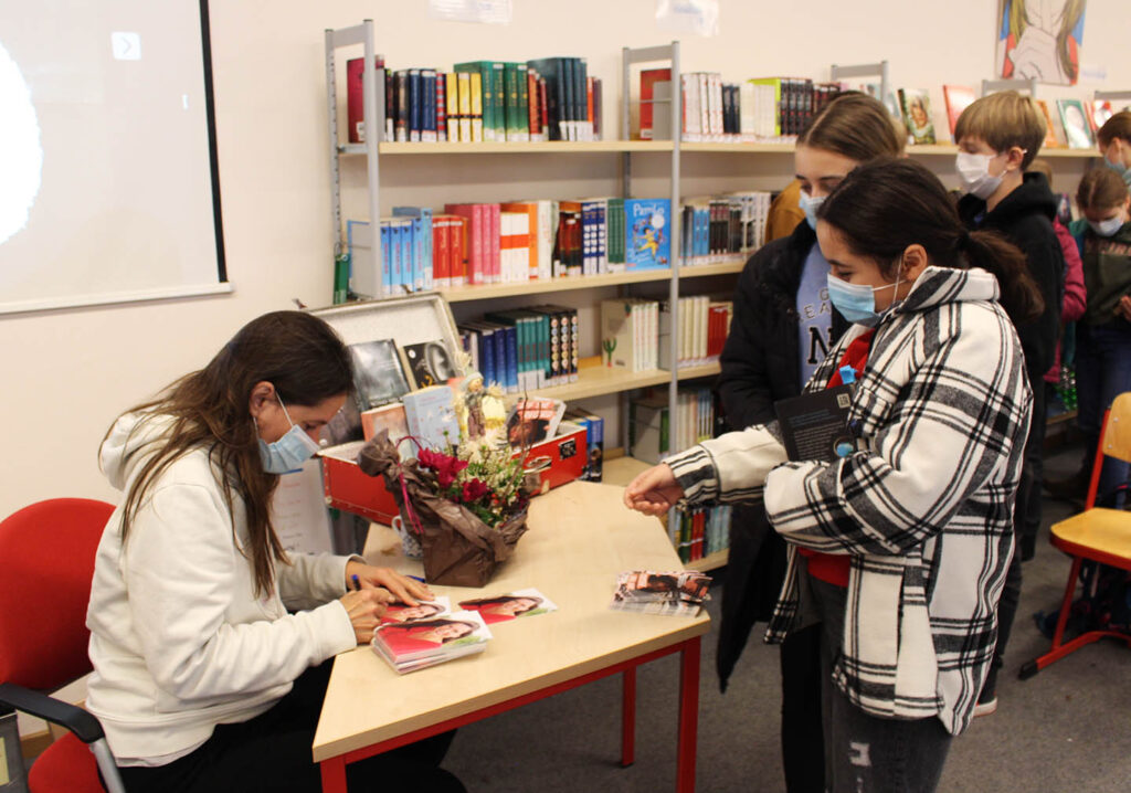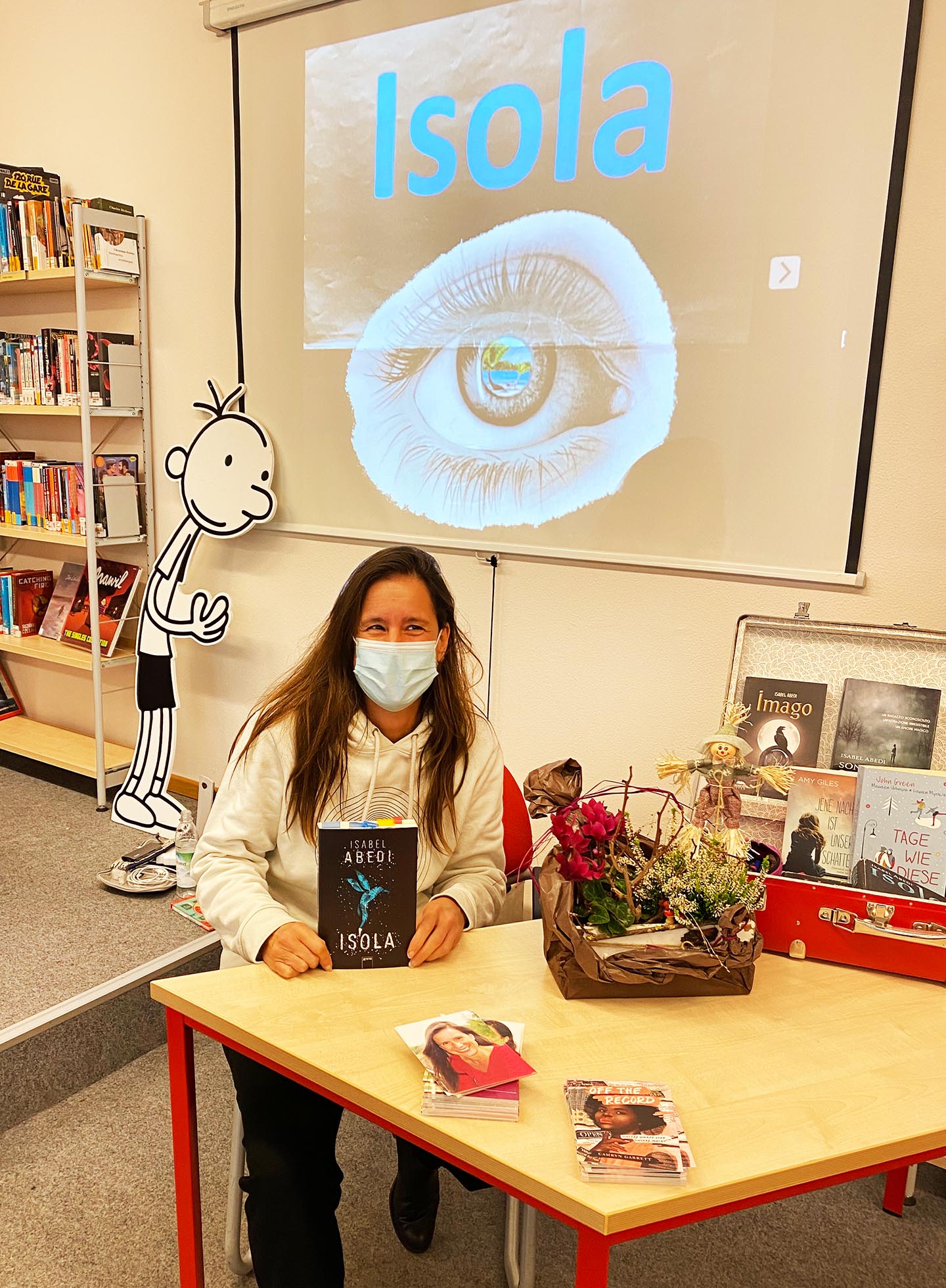 Donnerstag, den 11. November 2021: Drei Wochen lang hat sich die Klasse 7c auf diese Lesung eingestimmt: Jeder der Schüler und Schülerinnen hatte den Auftrag, einen der Jugendromane von der bekannten Autorin Isabel Abedi zu lesen und neben einer Buchrezension und der Charakterisierung der Protagonistinnen sich auch Fragen an die Autorin zu überlegen. Diese Vorbereitung hat sich ausgezahlt, denn über eine Stunde beantwortete Frau Abedi die sehr interessanten Fragen zu einzelnen ihrer Werke (vor allem zu „Die längste Nacht“ und „Isola“), aber auch zu ihrem Schreibprozess und woher sie als Autorin generell die Inspiration zu Orten und Figuren erhält. Die letzten zwanzig Minuten las sie dann noch einige Passagen aus dem Jugendkriminalroman „Isola“ vor, bei dem die Klasse trotz fortgeschrittener Zeit gespannt zuhörte. Ein besonderes Dankeschön nicht nur an Frau Abedi, die sehr authentisch und zugewandt sich Zeit für die Fragen genommen hat, sondern auch an Frau Schramm, die diese Lesung mit viel Initiative und E-Mail Korrespondenz möglich gemacht hat!