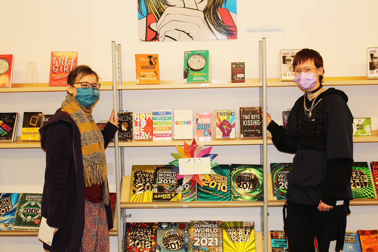 Noch eben waren Ethan und Amelie fleißig im Kunstunterricht von Frau Götz und schon präsentierten sie ihren in Regenbogenfarben gehaltenen Weihnachtsstern in der Schulbibliothek, um auf die LGBTQ+-Literatur aufmerksam zu machen.
