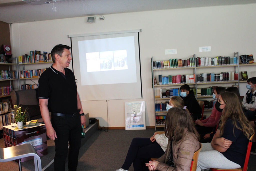 Last but not least kam Frau Scheunemann als Wiederholungstäterin zurück- und zwar mit der Geheimagentin Tessa, die die 6d hinter das Geheimnis des “Codeworts Lotusblüte” brachte. Für alle, die mit eintauchen wollen, hat die Autorin drei signierte Exemplare der Bibliothek überlassen. Gleich im Anschluss kam Dr. Jörg Bernardy zu Gast und hatte gleich Interessierte aus drei unserer zehnten Klassen als Publikum. Er begeisterte mit seinem literarischen Workshop zu Tabubrüchen im Internet, einem brandaktuellen Thema!