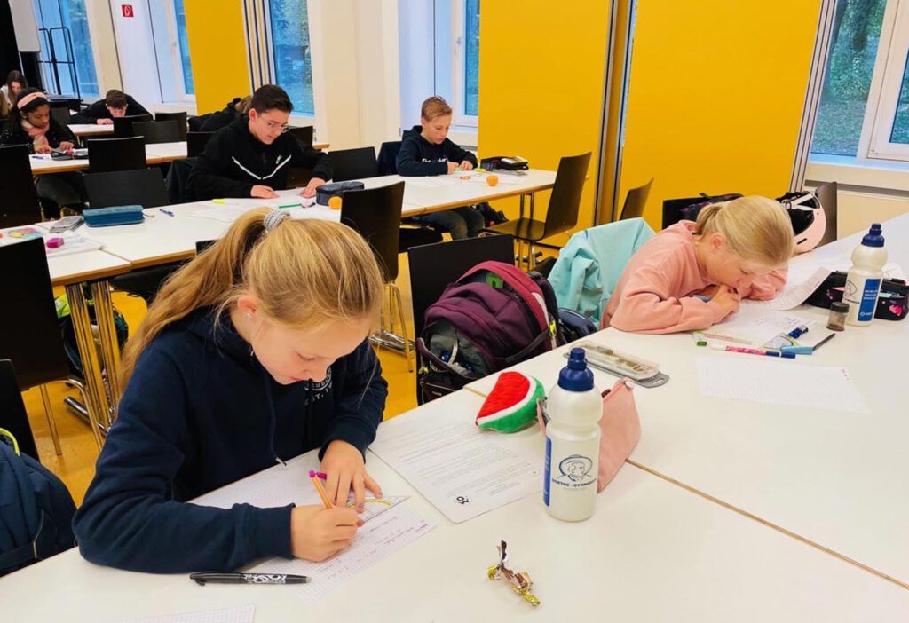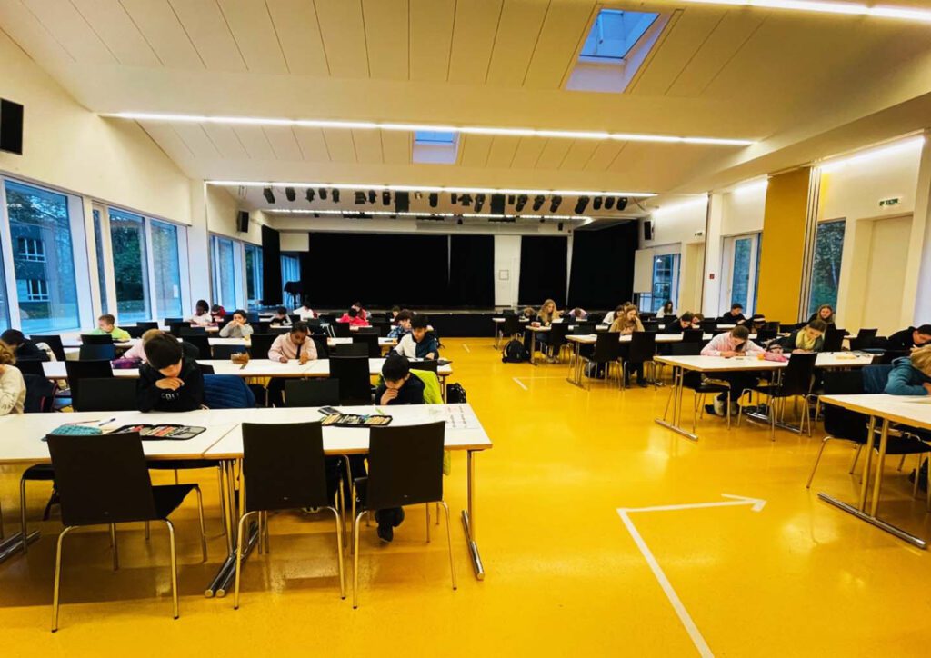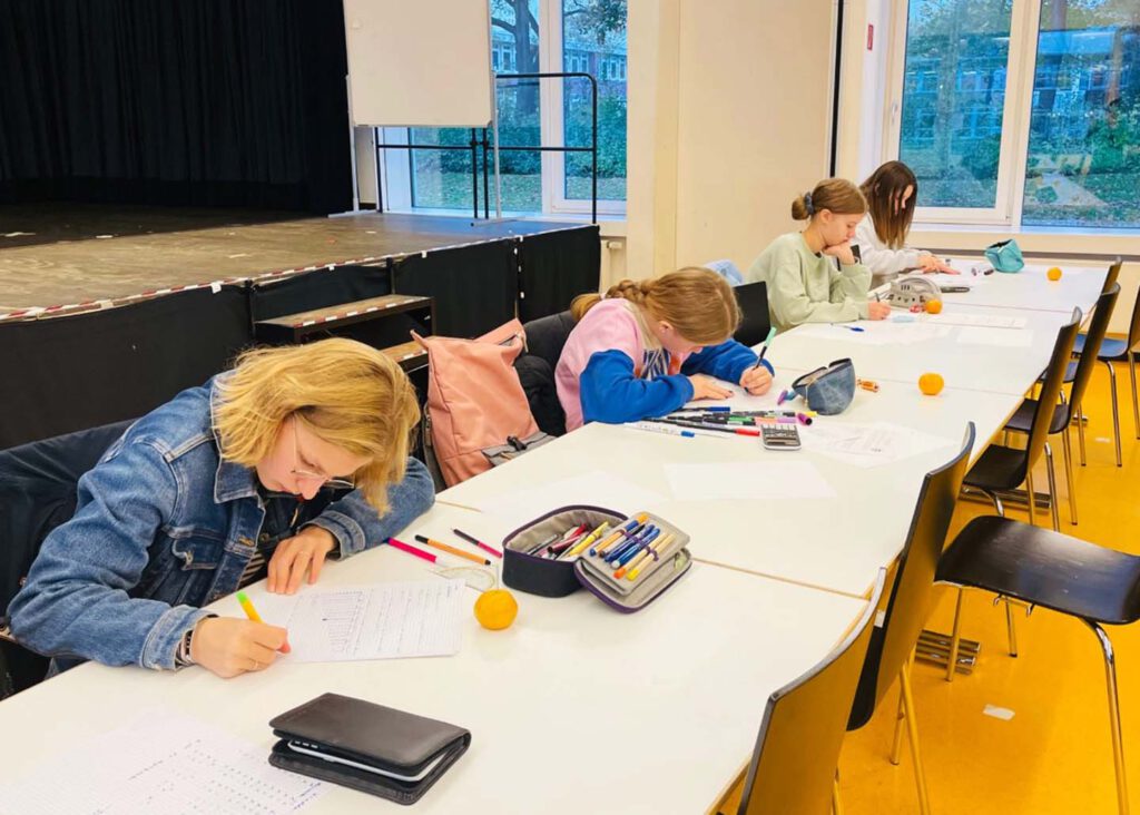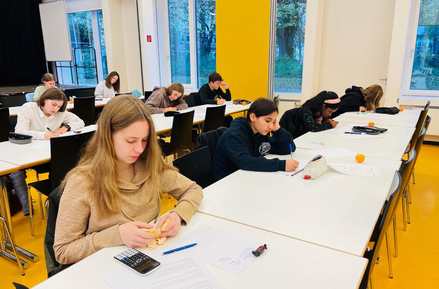 Am vergangenen Freitag, den 11. November 2022, konnte man eine kleine Gruppe Siebtklässler beobachten, die an den großen Fenstern vor der Aula stand und sich fragte: „Machen die da drinnen wirklich stundenlang Mathe?“