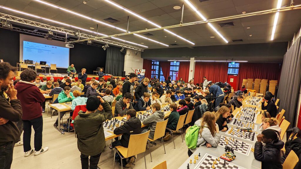 Donnerstag, den 1. Dezember 2022: Endlich wieder Nahschach! Am vergangenene Donnerstag wurden die Hamburger Meisterschaften für Schulmannschaften in der STS Alter Teichweg ausgetragen. Das Goethe war mit 2 Mannschaften um insgesamt 19 Spielerinnen und Spielern am Start. Erreicht wurden schließlich die Plätze 9 und 16. Herausragend war die Leistung der jüngsten Teilnehmerin Alekhya Mudireddy aus der 6d, die am 7. Brett der 1. Mannschaft 5 Punkte erzielte! Es gewann nach 7 Runden und insgesamt 6 Stunden das Johanneum vor dem Helmut-Schmidt-Gymnasium. Tabelle: https://www.hsjb.de/schulschach/hamburger-mannschaftsmeisterschaften-im-schulschach/ergebnisse-hsmm-2022-2023/