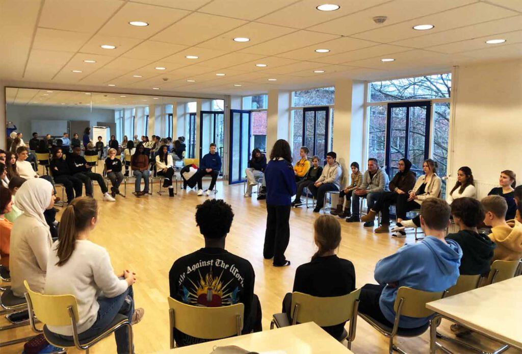 Am Mittwoch, den 11.01.2023 ging es mit Frau Hägele, Herrn Martens, Herrn Petereit und ca. 40 Klassen- und Profilsprecher:innen, darunter dem SV-Team, auf große SR-Reise (Wir mussten schließlich Bus, S- und U-Bahn nach Rahlstedt nehmen!). Tagespunkt 1 war es, die Namen der Teilnehmer:innen zu lernen und einander außerhalb flüchtiger Augenblicke auf dem Schulhof kennenzulernen – nachdem jede:r neben einem neuen Gesicht saß und Meinungen über Lieblingsfächer ausgetauscht worden waren, machten wir uns an die Arbeit. Es sollte an diesen zwei Tagen zum Thema Rassismus, das die Schülervertretung schon seit Jahresanfang priorisiert hatte, gearbeitet werden.