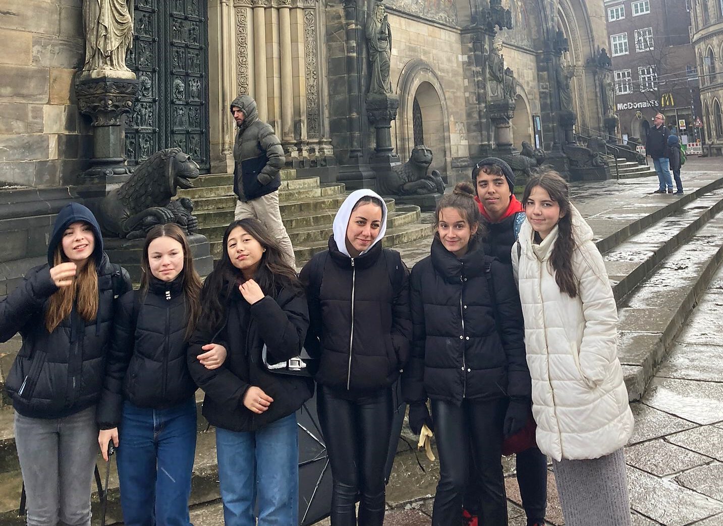 Am ersten Tag durften die Spanier:innen zum ersten Mal mit uns in die Schule und es erfolgte eine Begrüßung durch Herrn Scherler in der Bibliothek. Daraufhin führten wir in Kleingruppen einen Schulrundgang für die Spanier:innen durch. Diese berichteten später, dass sie von den einzelnen und verschiedenen Räumen sowie von der Größe unseres Goethe-Gymnasiums begeistert waren. Um 10 Uhr unternahmen sie schließlich eine Stadtführung in der Innenstadt. Später kamen die Deutschen Austauschpartner:innen dazu, um mit den Spanier:innen das berühmte Miniatur Wunderland zu besichtigen. Unseren Abend durften wir, wie alle Abende, frei gestalten. Viele Schüler:innen gingen mit ihren Austauschpartner:innen auf den Hamburger Dom – der perfekte Adrenalinkick für alle!