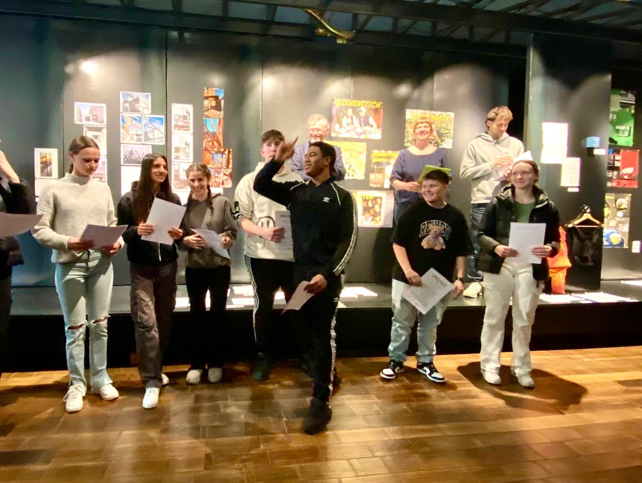 Ausgezeichnet! Für so gut wurde die Leistung der Klasse 10b des Goethe-Gymnasiums befunden, dass ihre Portraitserie unter den rund 140 Einsendungen ausgewählt und ausgestellt wurde. Die Aufregung war groß, als die Schüler:innen der 10b am 04. April 2023 auf der eigenen Vernissage im Design Zentrum Hamburg ihre Urkunde erhielten. Über 220 Schüler:innen aus insgesamt 15 Hamburger Schulen nahmen am Design-Wettbewerb teil. Unter dem Motto „Design for Future“ stellten sich die Teilnehmenden der schwierigen Aufgabe, mit ihrem Design nachhaltiges Denken anzuregen. Mit dem Ziel das Thema „Insektenschutz“ möglichst auf eine optisch ansprechende und veranschaulichende Weise bildnerisch umzusetzen, erstellten die Schüler:innen der 10b in Begleitung ihrer Klassenleitung Silvia Götz und des Fotografen Frederick Vidal Plakate, die mit Wortwitz und viel Fototalent auf charmante Weise auf das Artensterben hinweisen: Wer mit „Schmetterlingen im Bauch“ vor einem großen Stück „Bienenstich“ sitzt, fühlt sich beim genaueren Hinsehen sicher „entlarvt“, wenn im eigenen Garten noch kein „Insektenhotel“ für „Biene Maja“ bereitsteht. Was die Schüler:innen noch aus der erfolgreichen Wettbewerb-Teilnahme mitnehmen? Zahlreiche Kniffe und Tricks für gute Fotografie sowie die Wirksamkeit von Kunst und Kultur für die Aufbereitung gesellschaftlicher Themen.