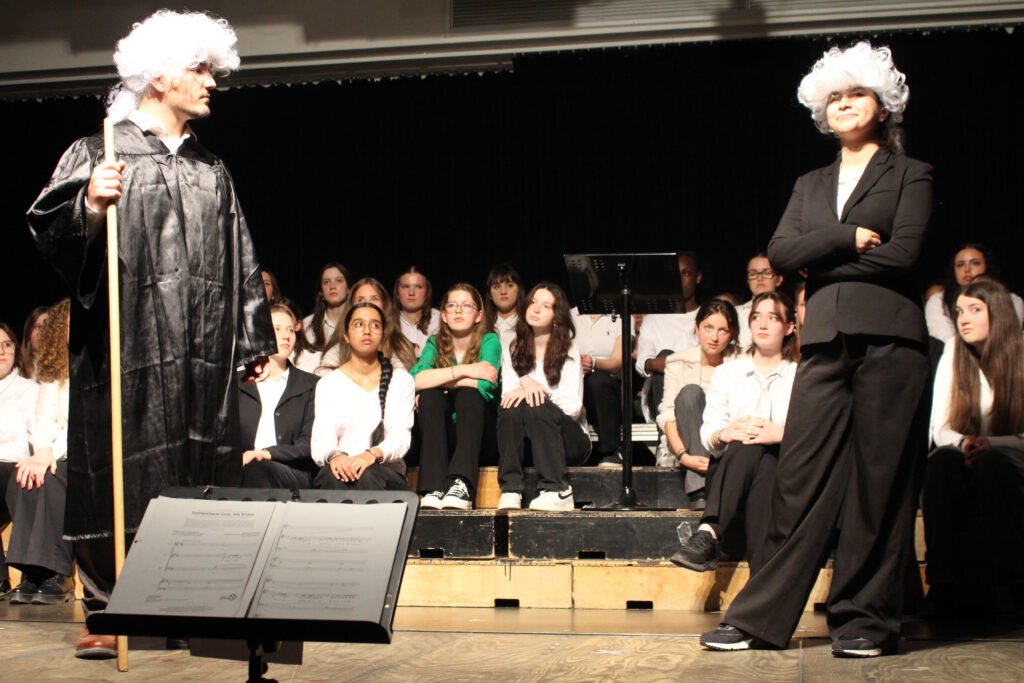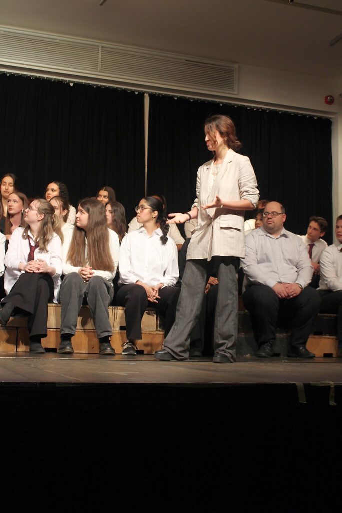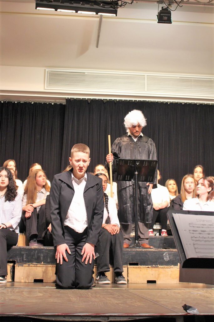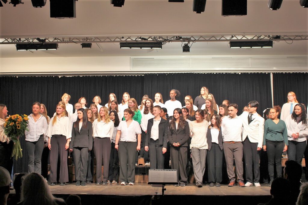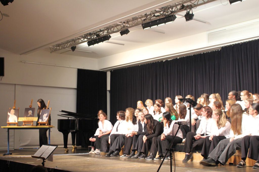 Am Freitag, den 02. Juni 2023, demonstrierten Goethes Chöre anhand einer Dystopie die Schönheit von Freiheit. Für “Freedom!” (George Michael) sangen der Kammerchor unter der Leitung von Tine Wiechmann, nachdem mit dem Großen Chor unter der Leitung von Marilena Günther das “Breaking Free” (Jamie Houston) zur „Perfekten Welle” (Simon Triebel und Andreas Herde) gelang. Eine mitreißende Ode an die Freiheit war das von zwei Handvoll Abiturient:innen geschriebene und inszenierte Chorstück, welches genau den Nerv der Zeit trifft. Mit ihrer fulminanten Darbietung zogen die Hauptdarsteller:innen Cemil Jasper, Anna Schärtl, Leni Oldenburg, Aydidul Hoque und Melisa Kara die Zuschauer:innen gekonnt in ihren Bann. Großes Lob an das Ensemble für die kurzweilige Vorstellung!