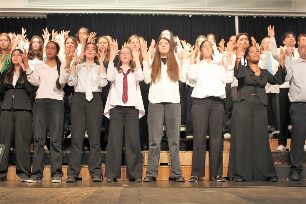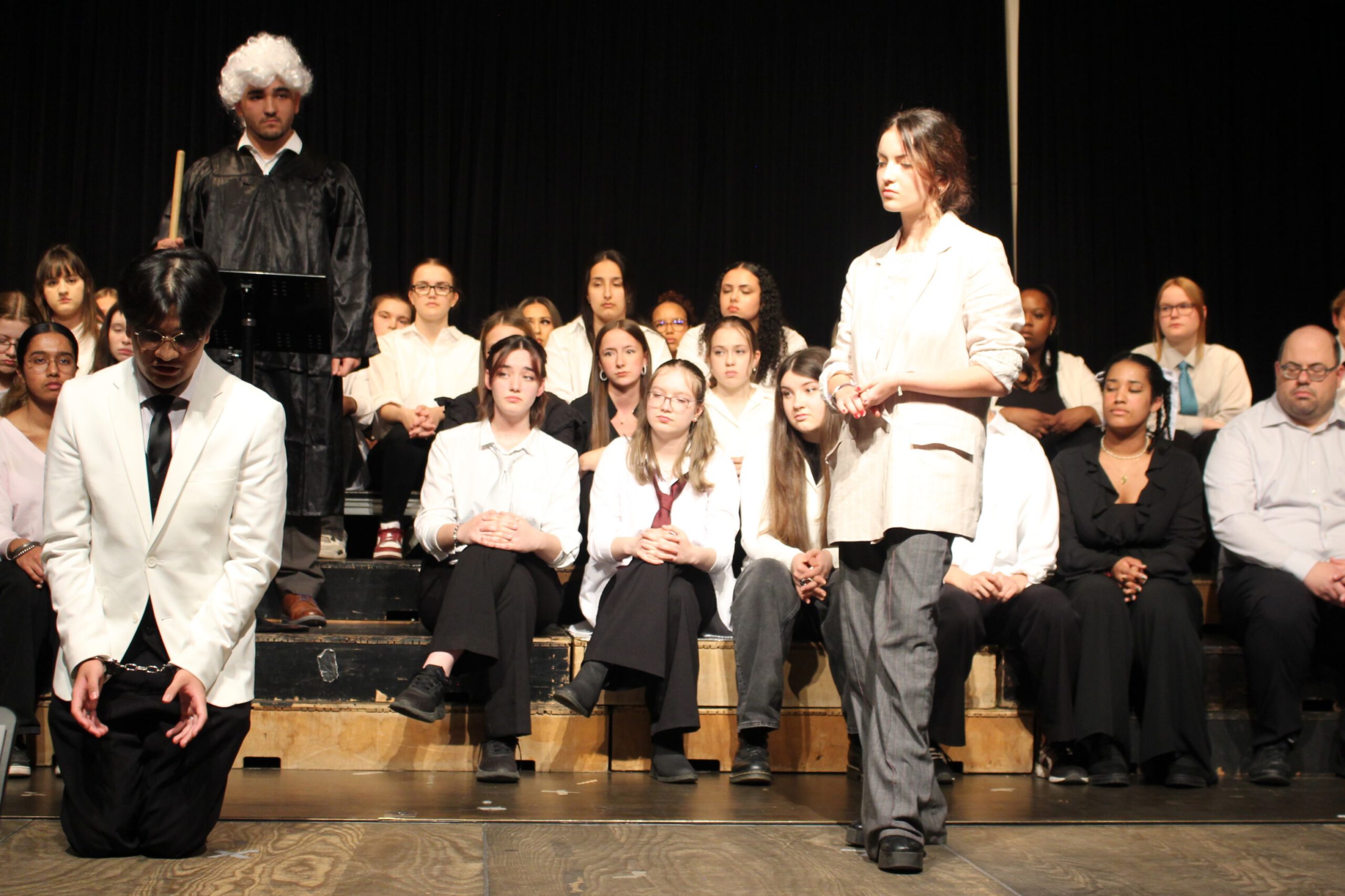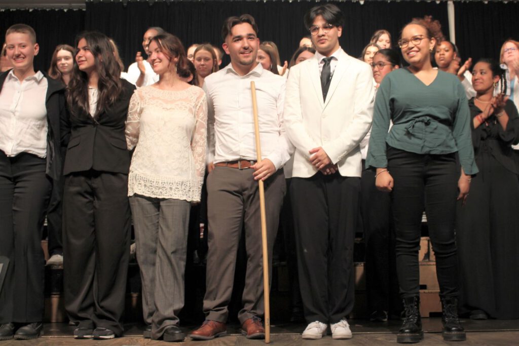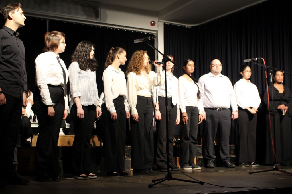Am Freitag, den 02. Juni 2023, demonstrierten Goethes Chöre anhand einer Dystopie die Schönheit von Freiheit. Für “Freedom!” (George Michael) sangen der Kammerchor unter der Leitung von Tine Wiechmann, nachdem mit dem Großen Chor unter der Leitung von Marilena Günther das “Breaking Free” (Jamie Houston) zur „Perfekten Welle” (Simon Triebel und Andreas Herde) gelang. Eine mitreißende Ode an die Freiheit war das von zwei Handvoll Abiturient:innen geschriebene und inszenierte Chorstück, welches genau den Nerv der Zeit trifft. Mit ihrer fulminanten Darbietung zogen die Hauptdarsteller:innen Cemil Jasper, Anna Schärtl, Leni Oldenburg, Aydidul Hoque und Melisa Kara die Zuschauer:innen gekonnt in ihren Bann. Großes Lob an das Ensemble für die kurzweilige Vorstellung!