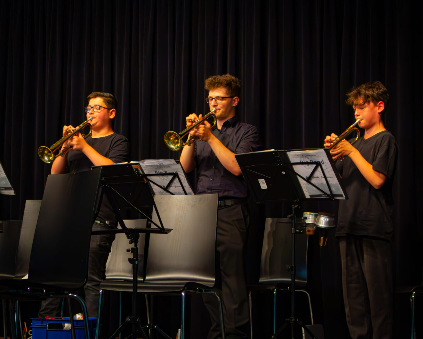 Leider war dies vorerst die letzte Aufführung unserer Big Band. Durch den Abgang einer Vielzahl von Schüler:innen in den vergangenen Jahren ist die Besetzung mittlerweile so dünn, dass Herr Junge hiermit alle (Anfänger:innen und Neueingeschulte selbstverständlich eingeschlossen) dazu aufruft, Teil der Big Band zu werden. Leihinstrumente sind reichlich vorhanden. Bei Interesse einfach eure Musiklehrer:innen ansprechen!