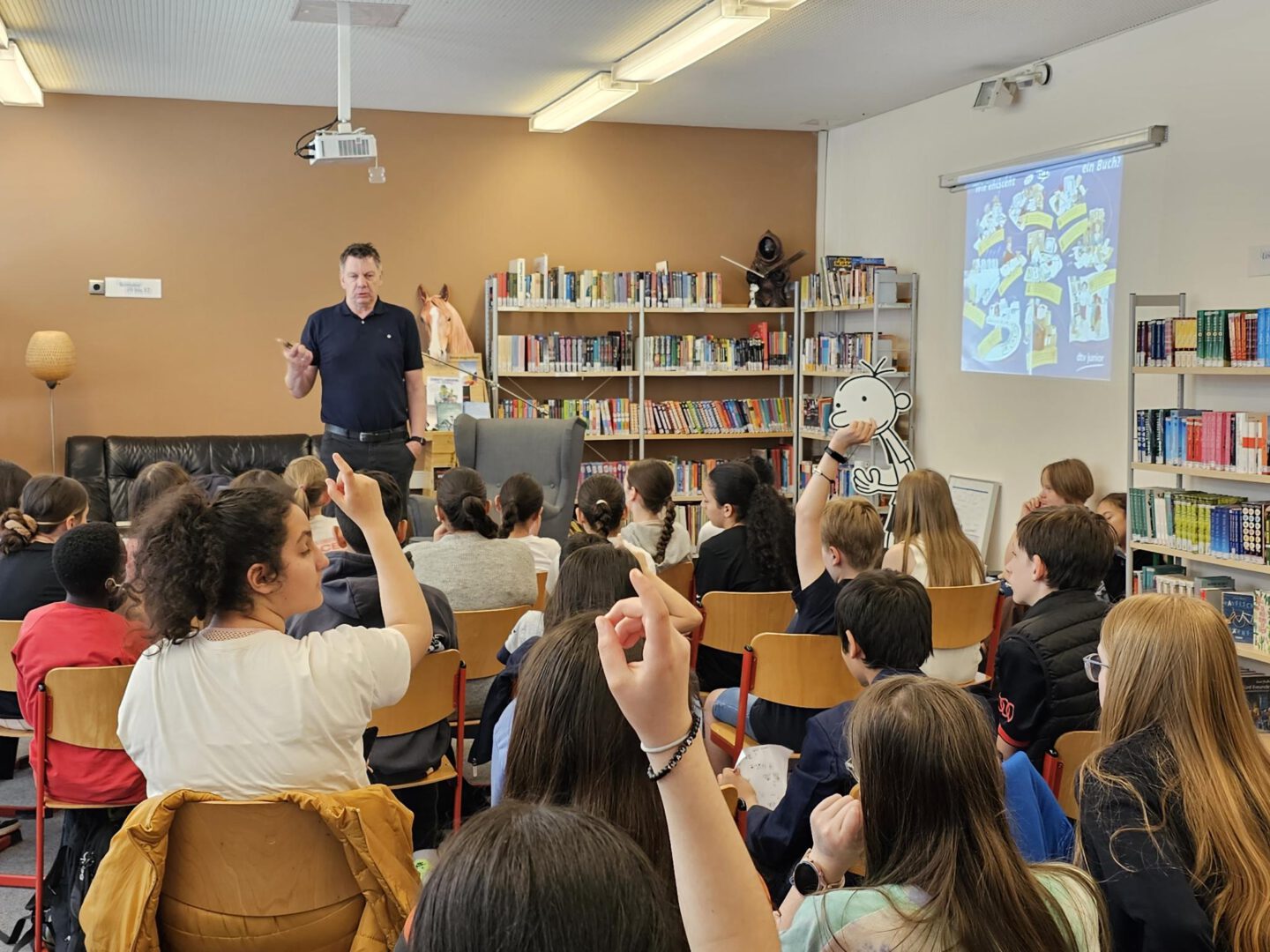 In unserer Schulbibiothek am Goethe-Gymnasium Lurup fand eine Lesung von dem Autoren Andreas Schlüter statt. Er stellte uns seinen Jugendroman “Young Guardians” vor. Viele Schüler:innen aus unserer Klasse fanden die Lesung sehr spannend. Am Anfang hat er uns ein wenig über sich selbst erzählt. Er ist seit über 30 Jahren Schriftsteller und hat um die 150 Bücher geschrieben, aber leider wurde bisher keines seiner Werke verfilmt. Wir fragten ihn auch noch, welches seiner Bücher sein Lieblingsbuch sei. Darauf sagte er uns, dass sein erstes Buch “Level 4- Stadt der Kinder” sein Lieblingsbuch sei und es das auch immer bleiben würde, weil damit seine Karriere als Buchautor begann.