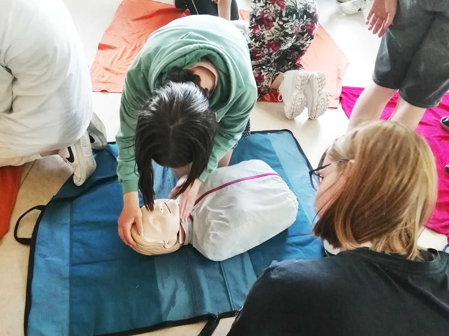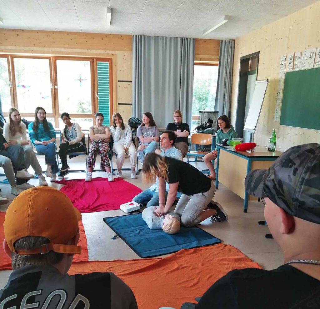 „Ein Handgriff kann Leben retten“. Mit dieser Aussage wurden die Siebt- und Achtklässler unserer Schule empfangen zu einem 2-stündigen Herzretterkurs. Dabei ging es um die Frage, wie man einem Bewusstlosen helfen kann. Fast 200 Schülerinnen und Schüler unserer Schule konnten an diesen Tagen diesen Handgriff lernen und erproben.