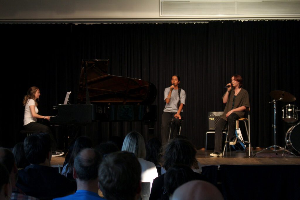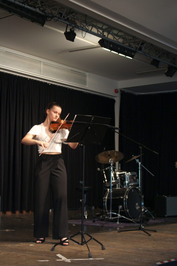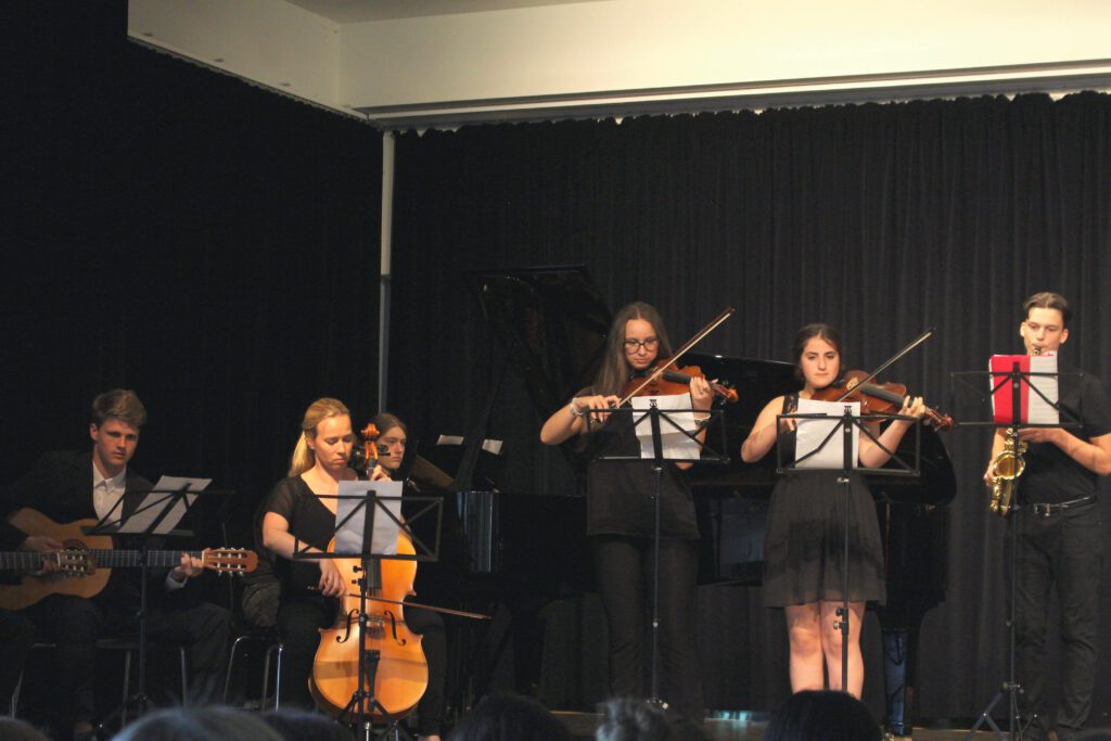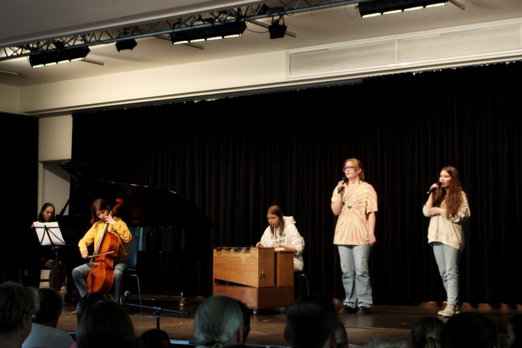 Donnerstag, den 15. Juni 2023: Was während der Unterrichtszeit hinter den Türen der Musikräume passiert, lässt sich ansonsten nur anhand der schallenden Klänge erahnen. Viel zu schade, dachte sich die Musikfachschaft der Schule. Kurzerhand wurde der Musikabend ins Leben gerufen, der viele Besucher:innen ins Forum lockte. Die Schüler:innen der Klassen 5-12 präsentierten eine Mischung aus klassischen Stücken, z.B. von Telemann und Händel, und Popsongs (u.a. von Tom Odell, Dua Lipa, Billie Eilish). Ein besonderes Highlight: Der Tango des Musikkurses des zehnten Jahrgangs, der von den Teilnehmenden nicht nur an den Instrumenten vorgetragen wurde, sondern auch mit einer Choreografie des Schülers David Rogowski (der an diesem Abend auch souverän Fagott spielte) mit viel Elan vorgeführt wurde. Egal ob Groß oder Klein, egal ob das erste Mal oder das zehnte Mal auf der Bühne – alle Mitwirkenden traten selbstbewusst und überzeugend auf und boten dem Publikum einen stimmungsvollen Abend. Was für eine gelungene Premiere!